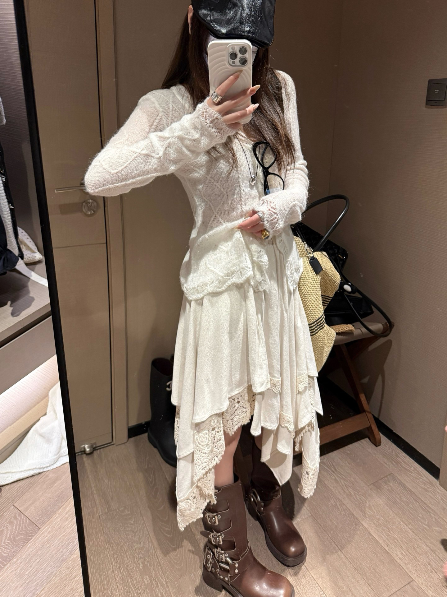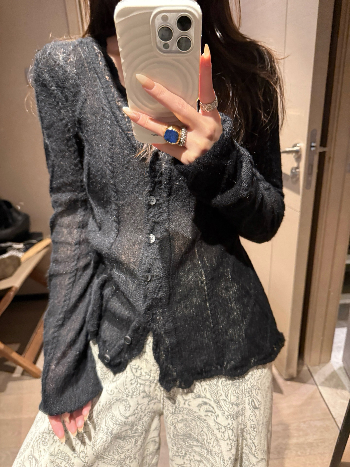 上衣针织衫 马海毛花边v领长袖 轻薄款 2025秋冬新款 针织开衫