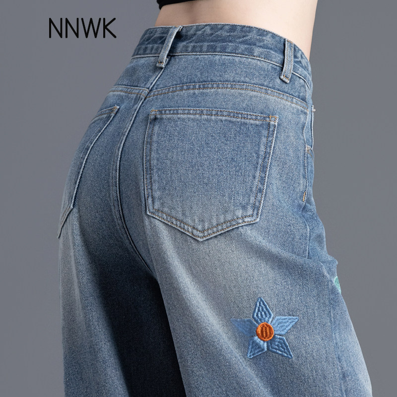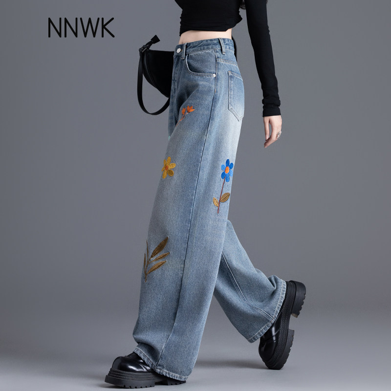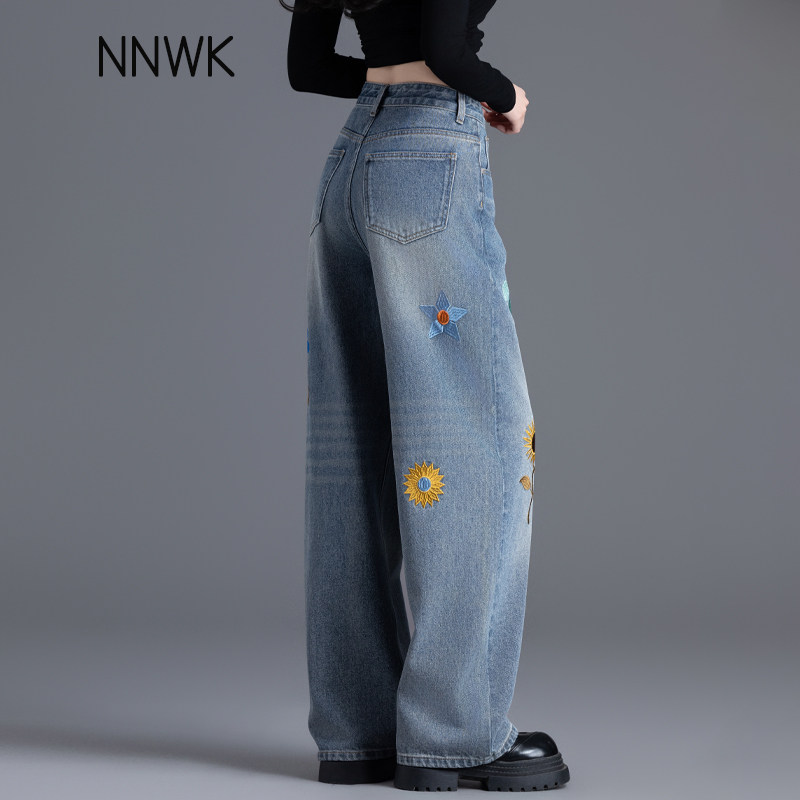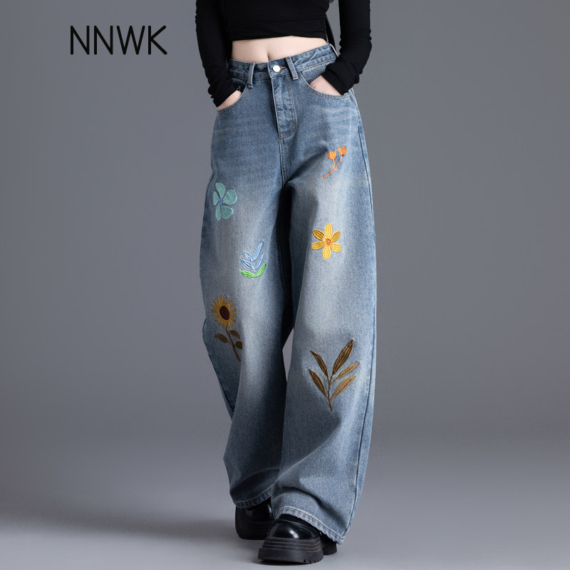 宽松休闲裤 lemanism美式 情侣款 男2025新款 子女 潮流刺绣花朵牛仔裤