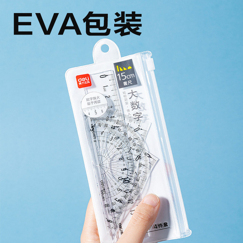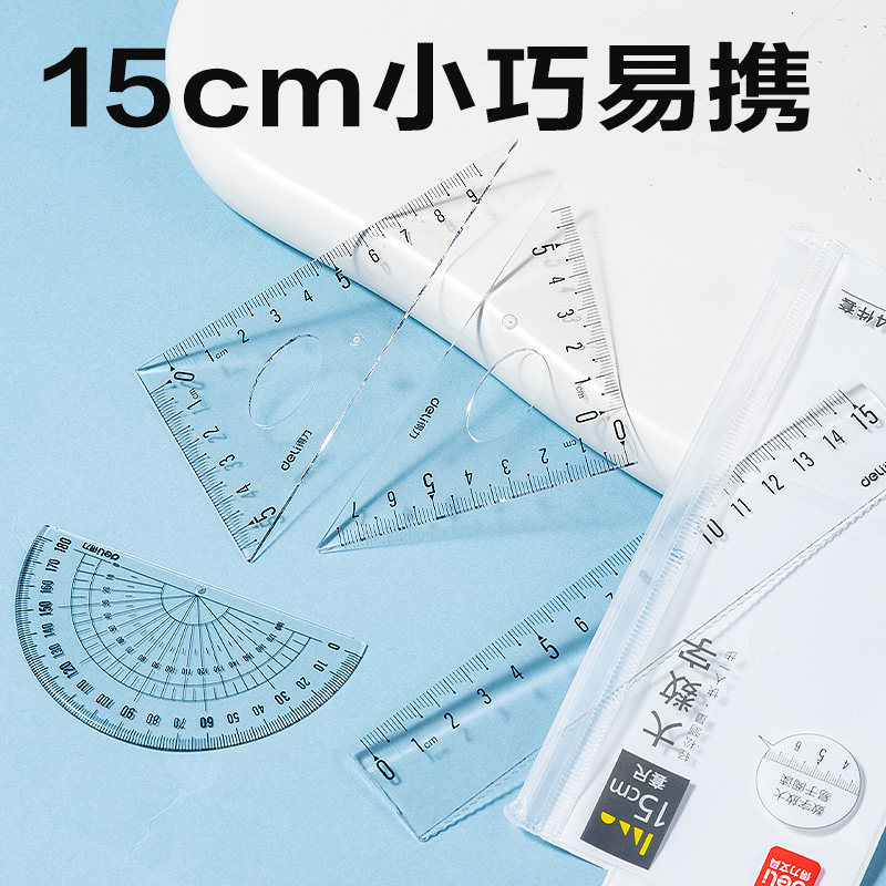 学生用考试几何推荐 得力套尺学生不费眼大数字尺子四件套三角尺直尺格尺量角器套装 透明亚克力材质多规格套装