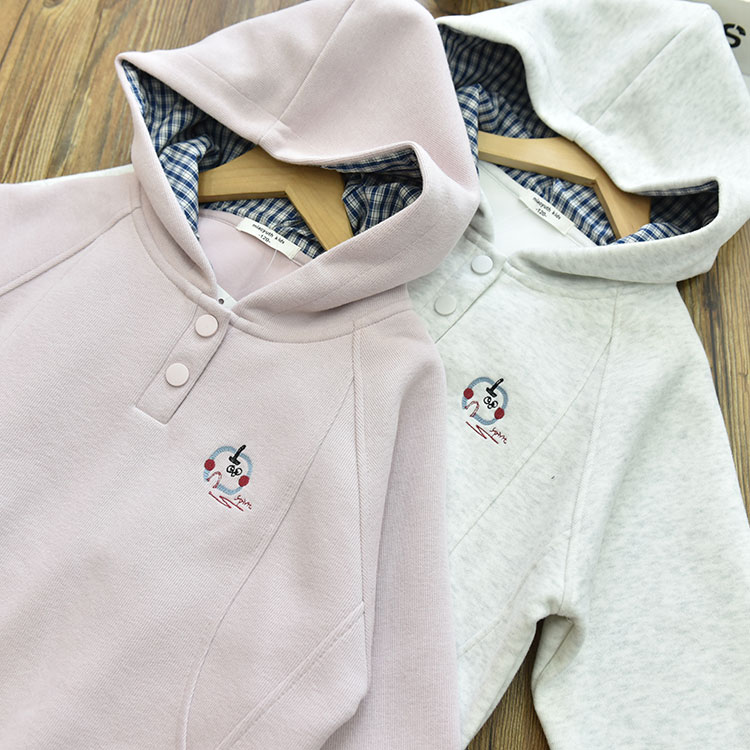 女童洋气时髦宽松刺绣休闲连帽套头卫衣 中大儿童百搭上衣秋