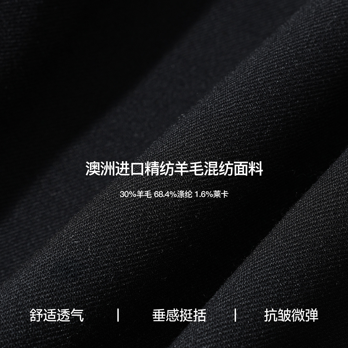休闲通勤长裤 RESTICK 澳洲进口美利奴精纺羊毛可机洗双褶弯刀西裤