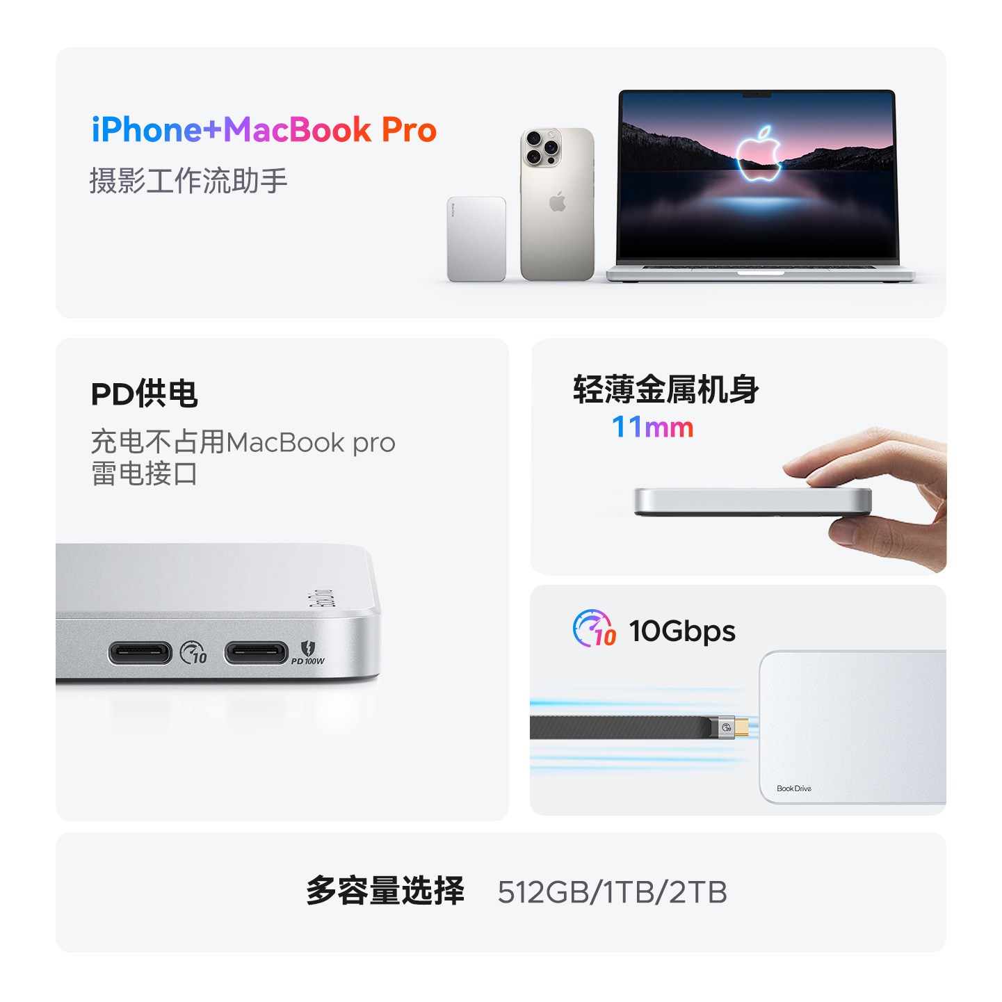 奥睿科磁吸移动固态硬盘BookDrive适用macbook笔记本苹果手机扩容