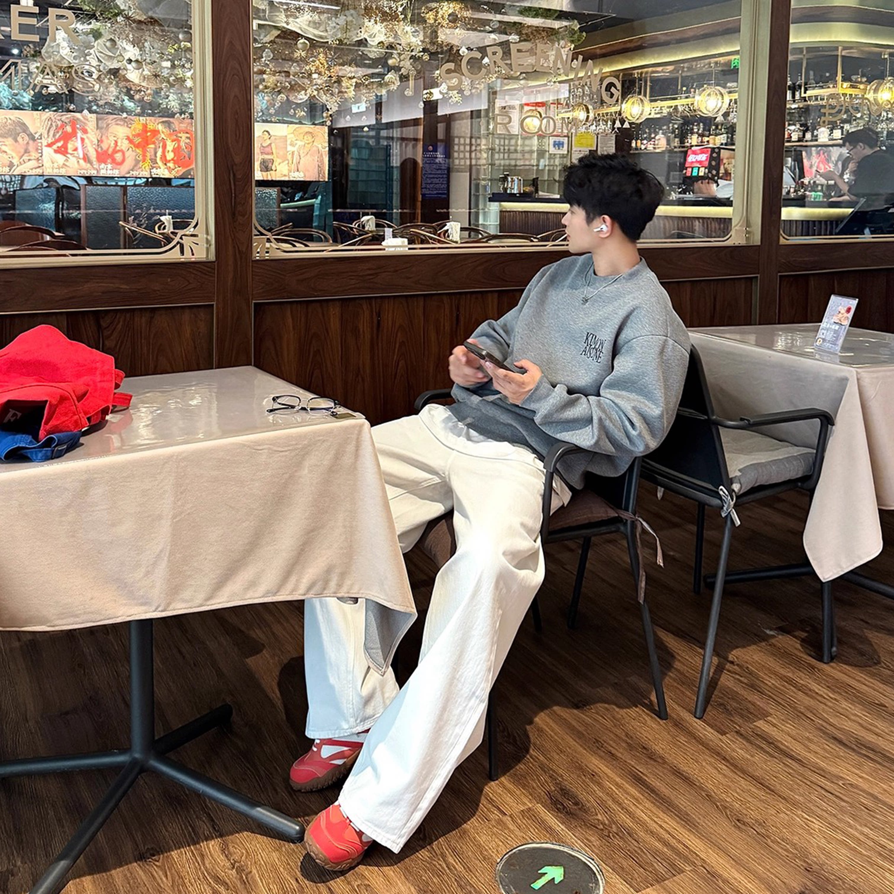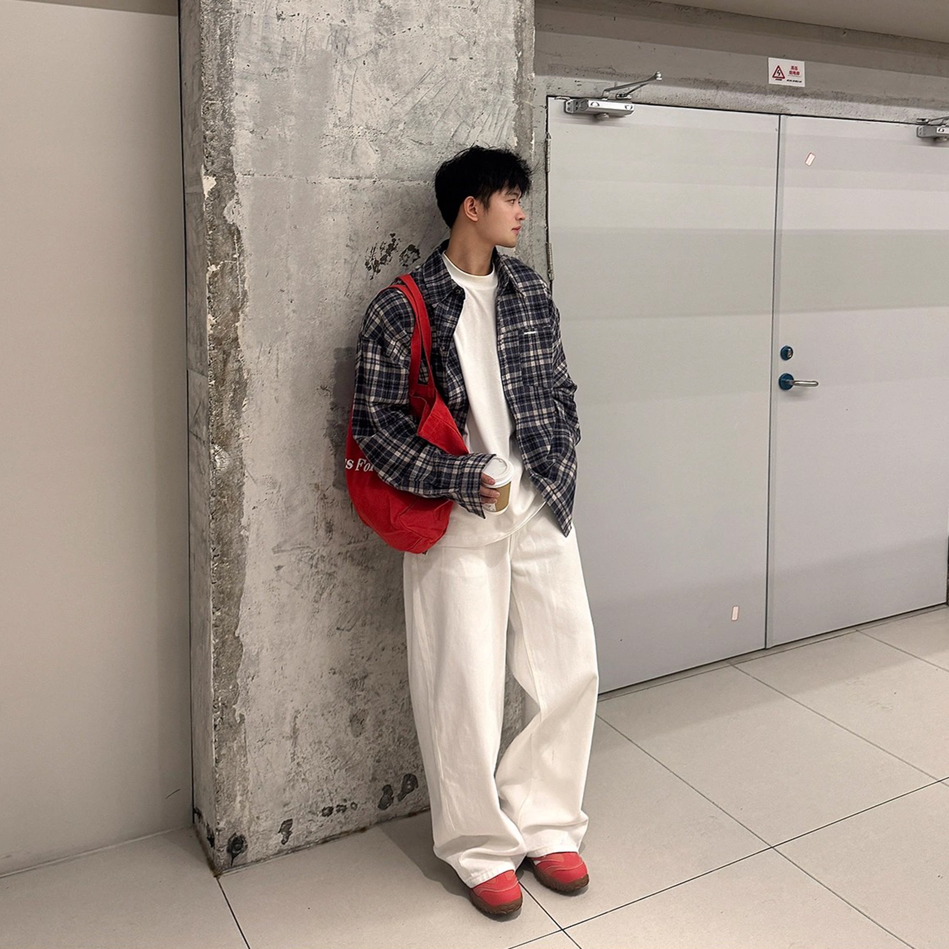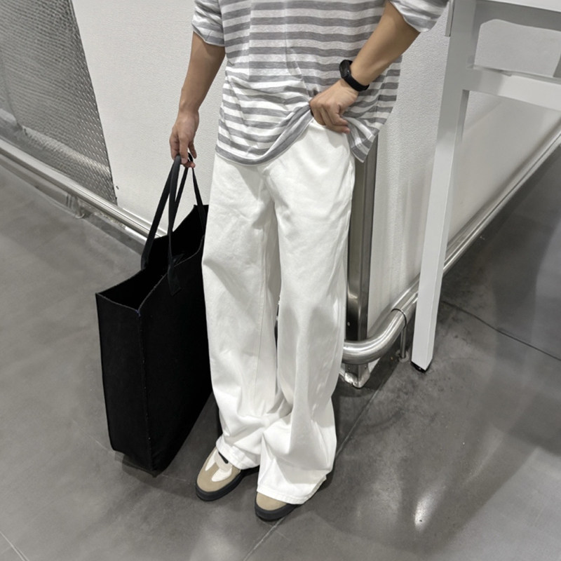 男 休闲垂感clenfit直筒全棉纯色牛仔裤 飞型记秋季 白色阔腿长裤