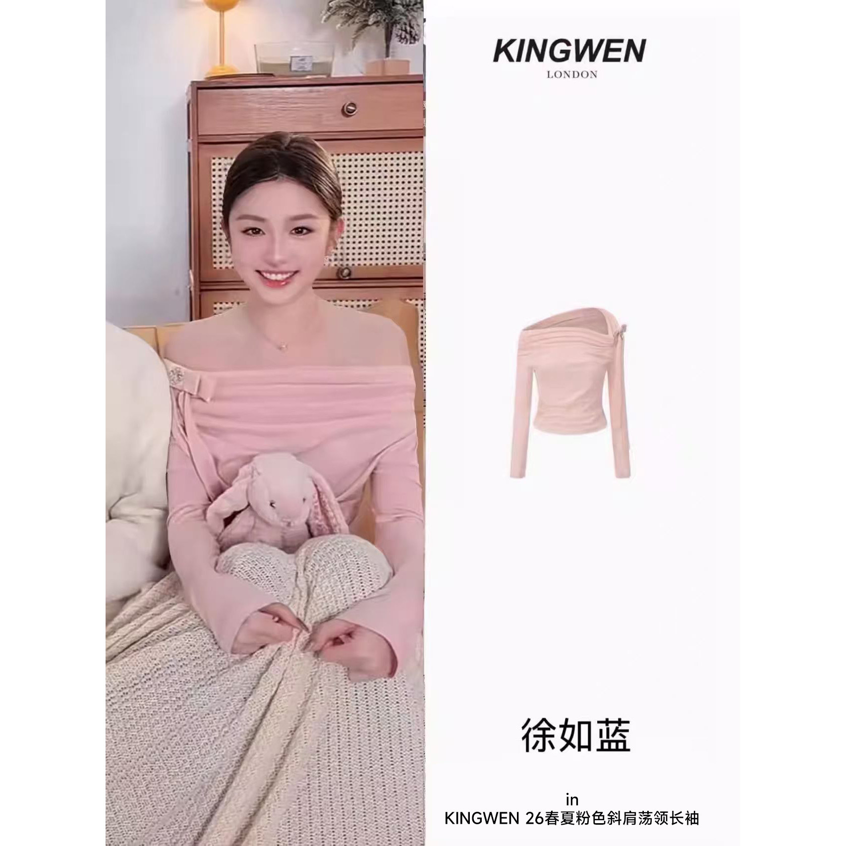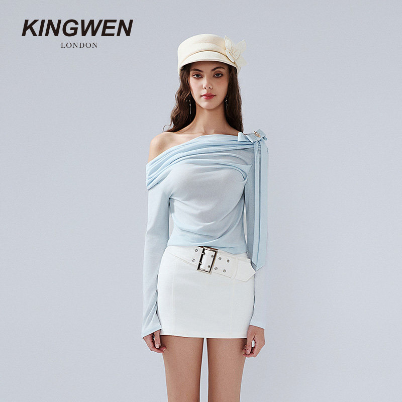 千金风上衣斜肩长袖 KINGWEN26早春一字露肩针织衫 徐如蓝同款
