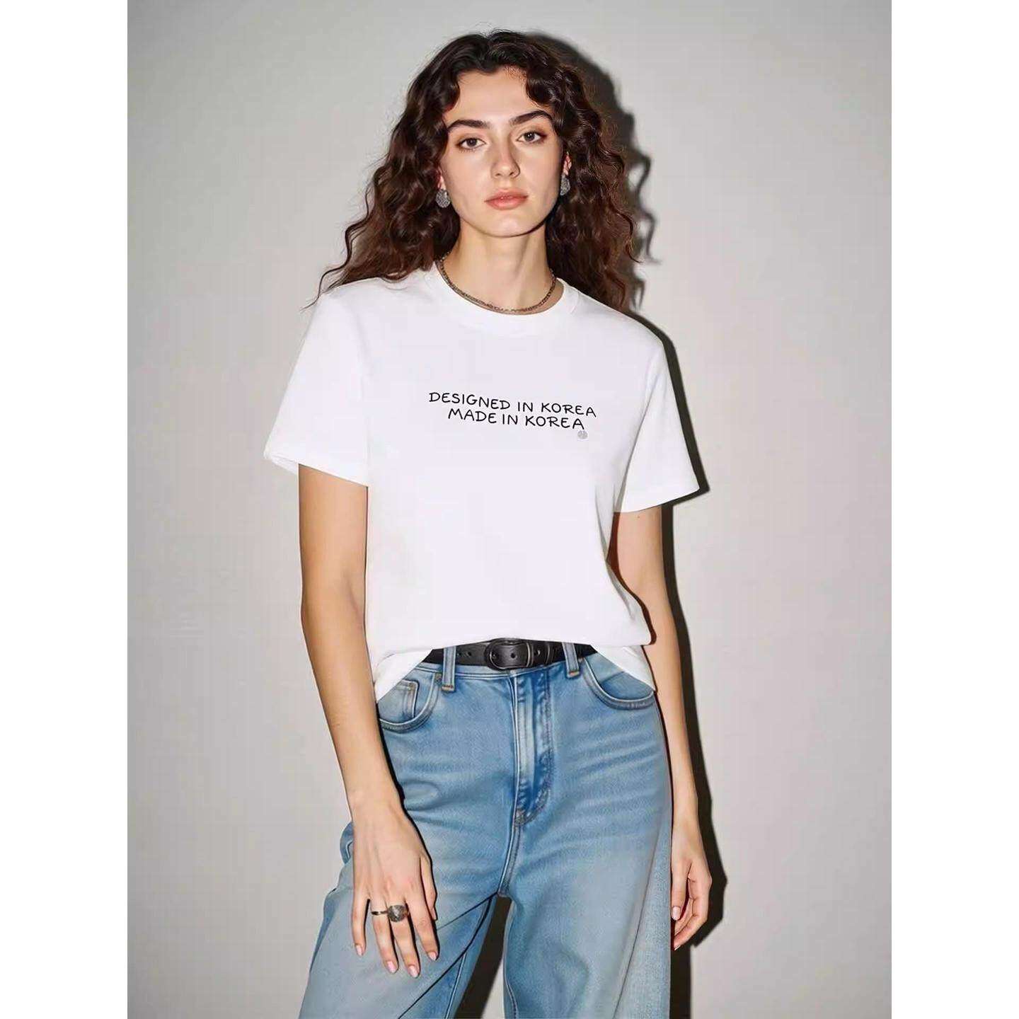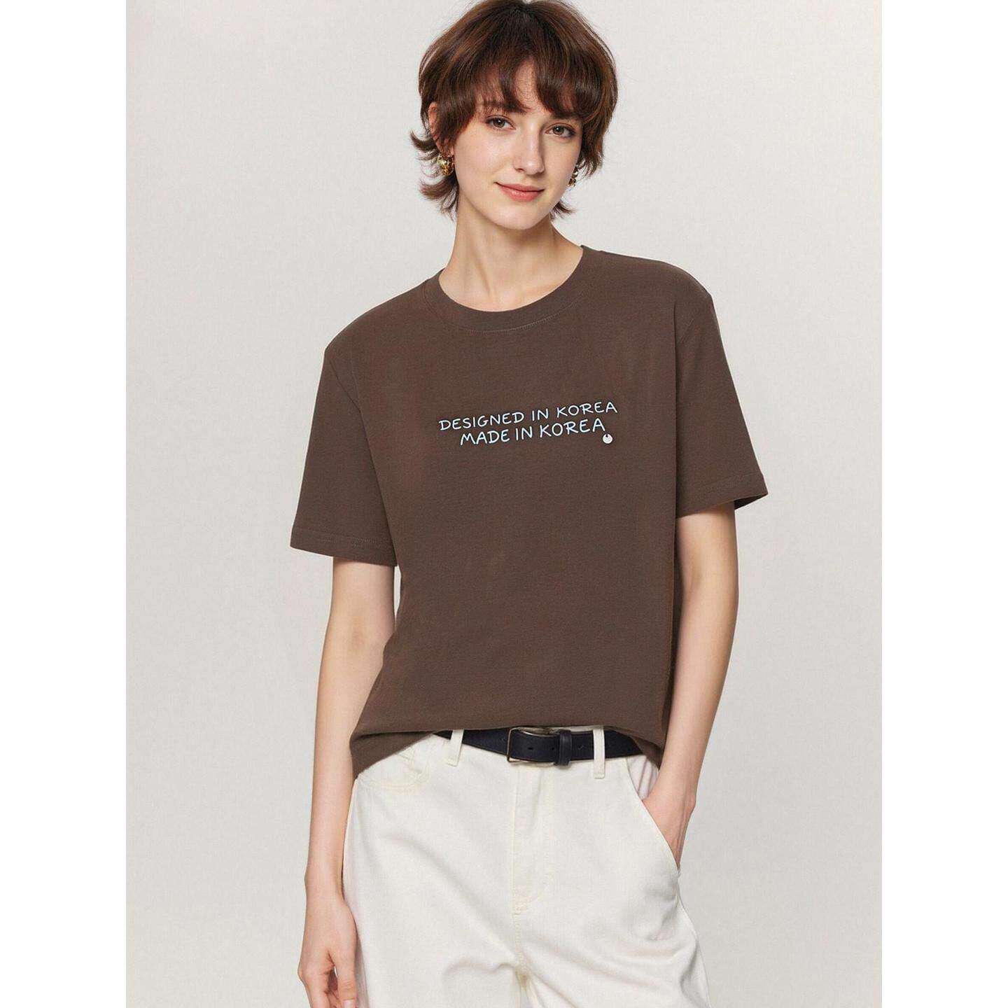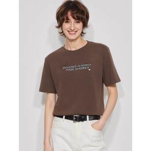 新款 Basic T恤女2026夏季 百家好咖色印花短袖 纯棉正肩体恤 House