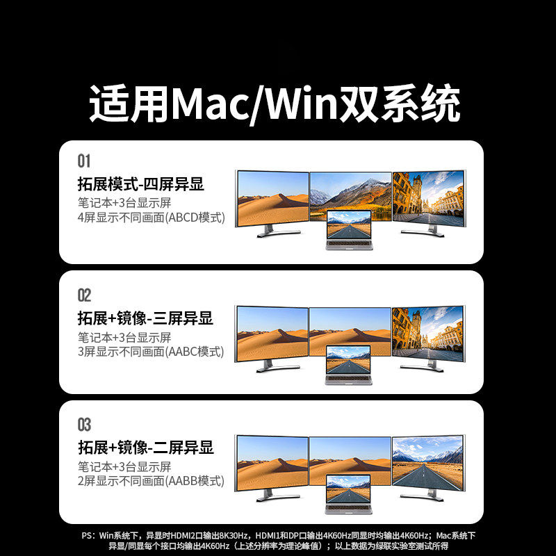 绿联typec桌面扩展坞拓展Displaylink转HDMI四屏异显DP多功能USB