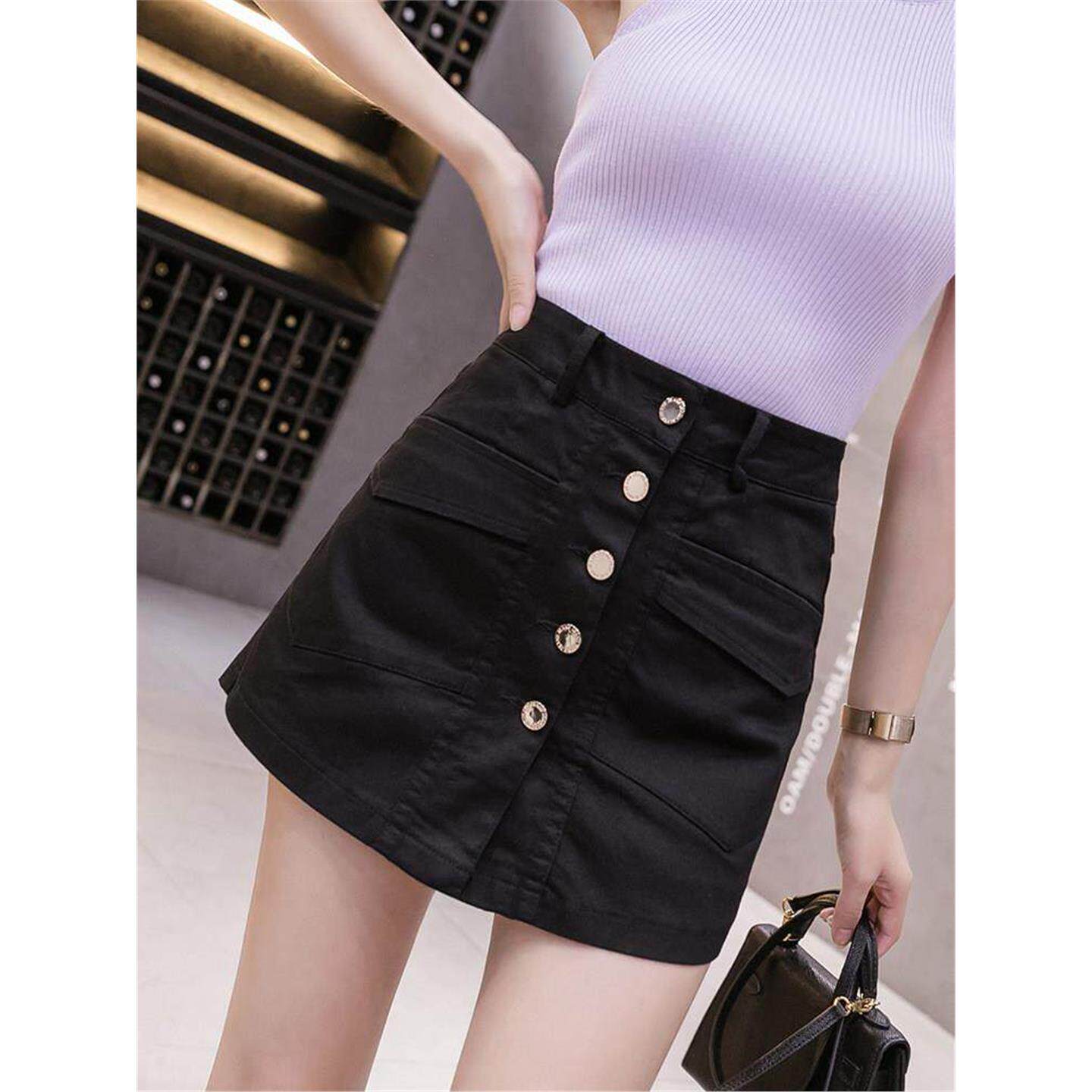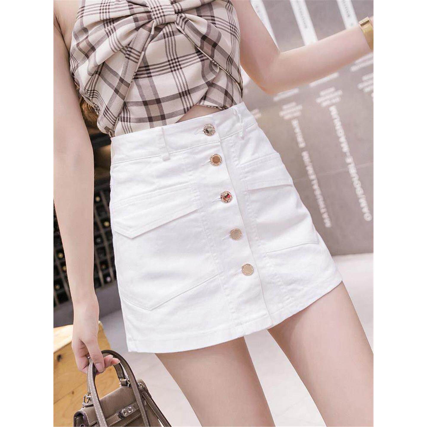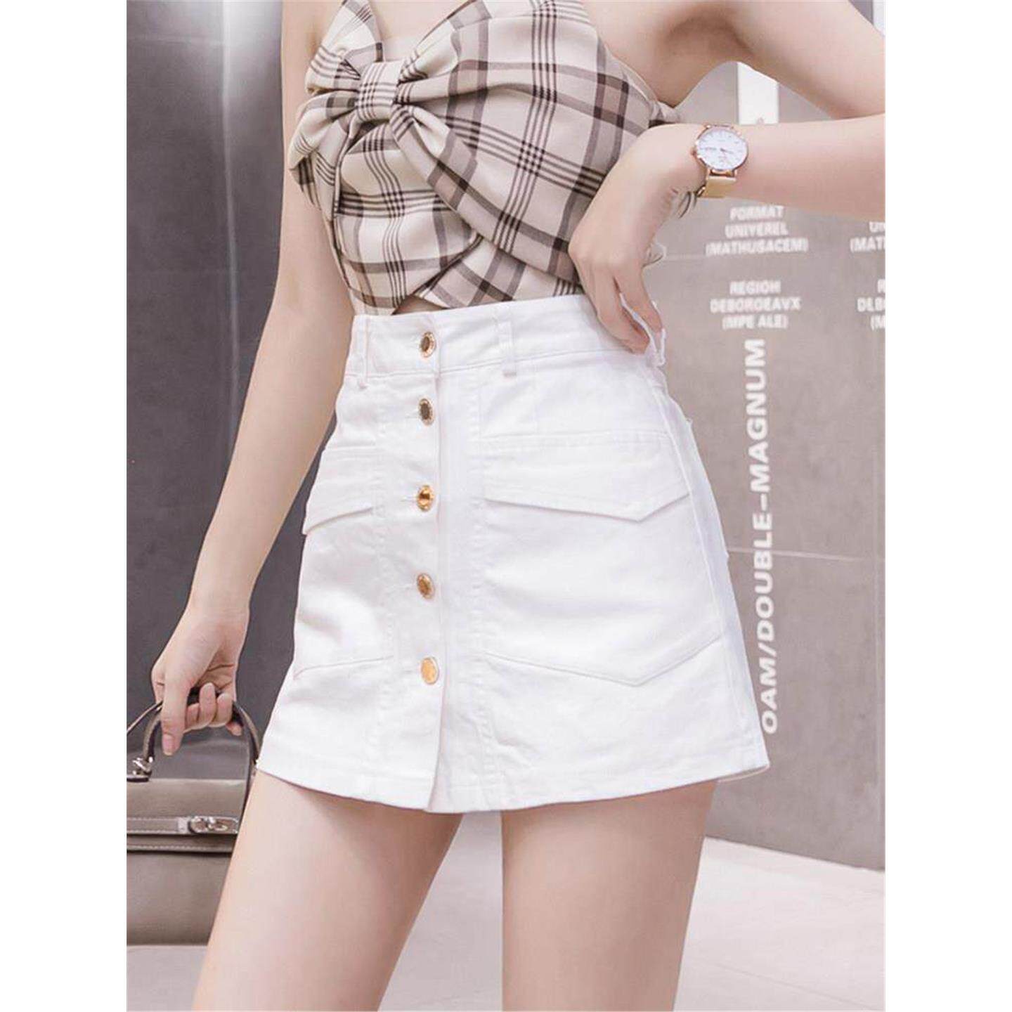 白色短裙半身裙女春夏2026新款 高腰气质排扣紧身a字开叉包臀裙裤