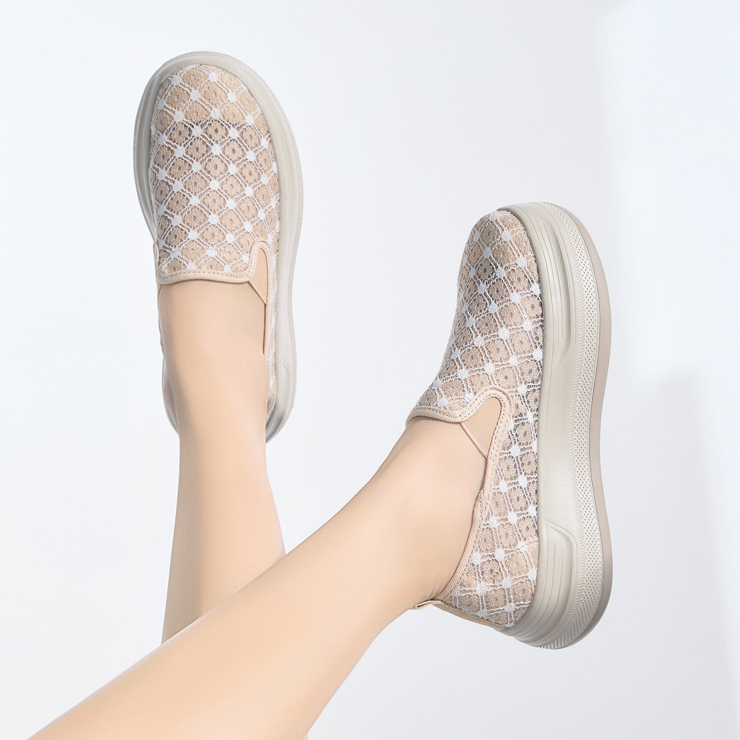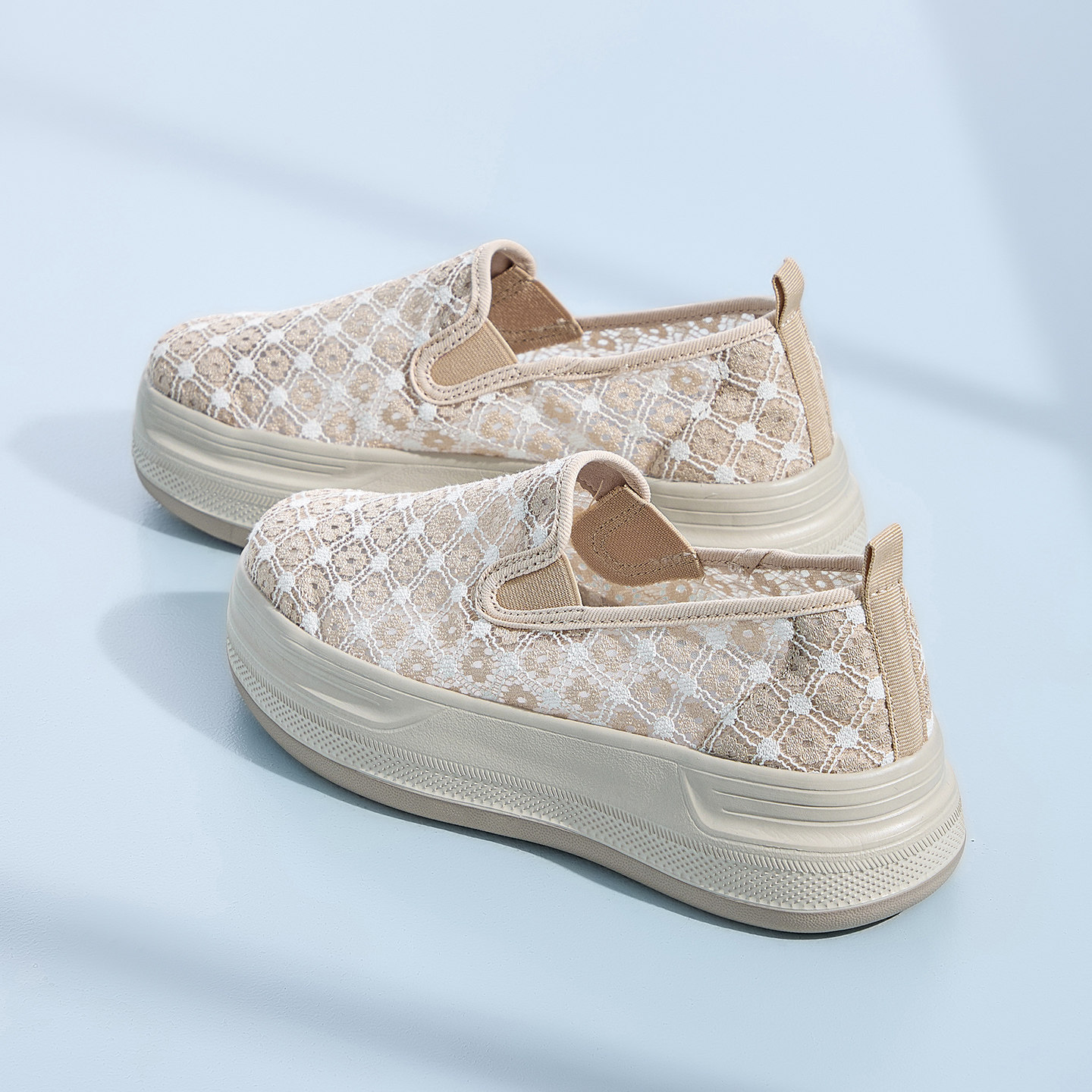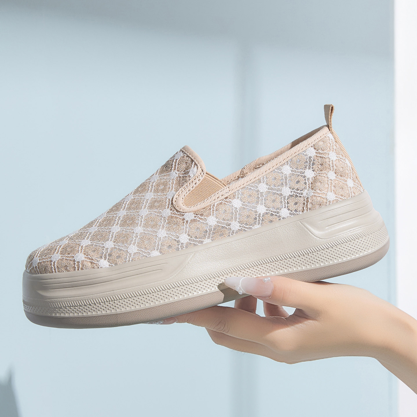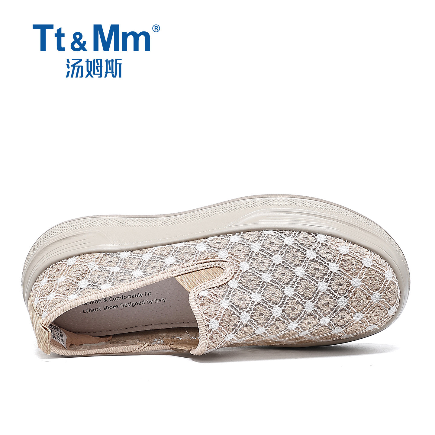透气懒人百搭单鞋 Tt&Mm 夏季 蕾丝厚底休闲一脚蹬乐福鞋 汤姆斯女鞋
