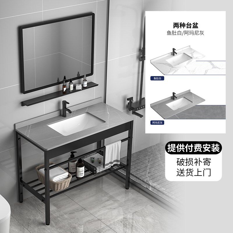 岩板台一体成型式 洗脸盆浴室洗手间水槽支架组合 台盆洗手盆落地式
