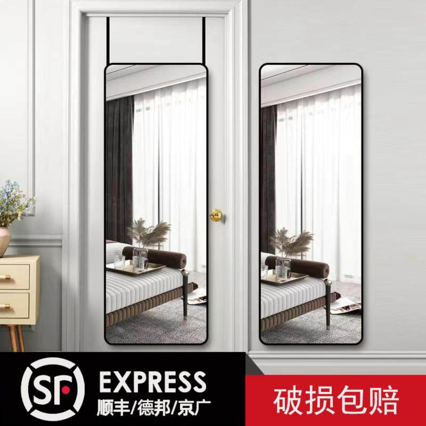 全身镜家用壁挂简约高级试衣镜挂衣架一体镜玄关门后贴墙穿衣镜子