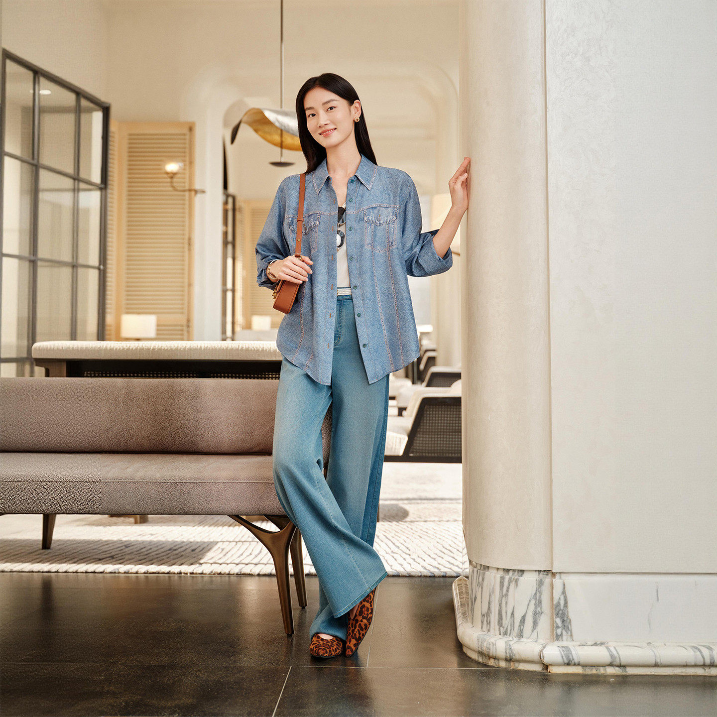 J604A 2026春夏新款 EP雅莹高端系列 高腰显瘦含桑蚕丝直筒牛仔裤