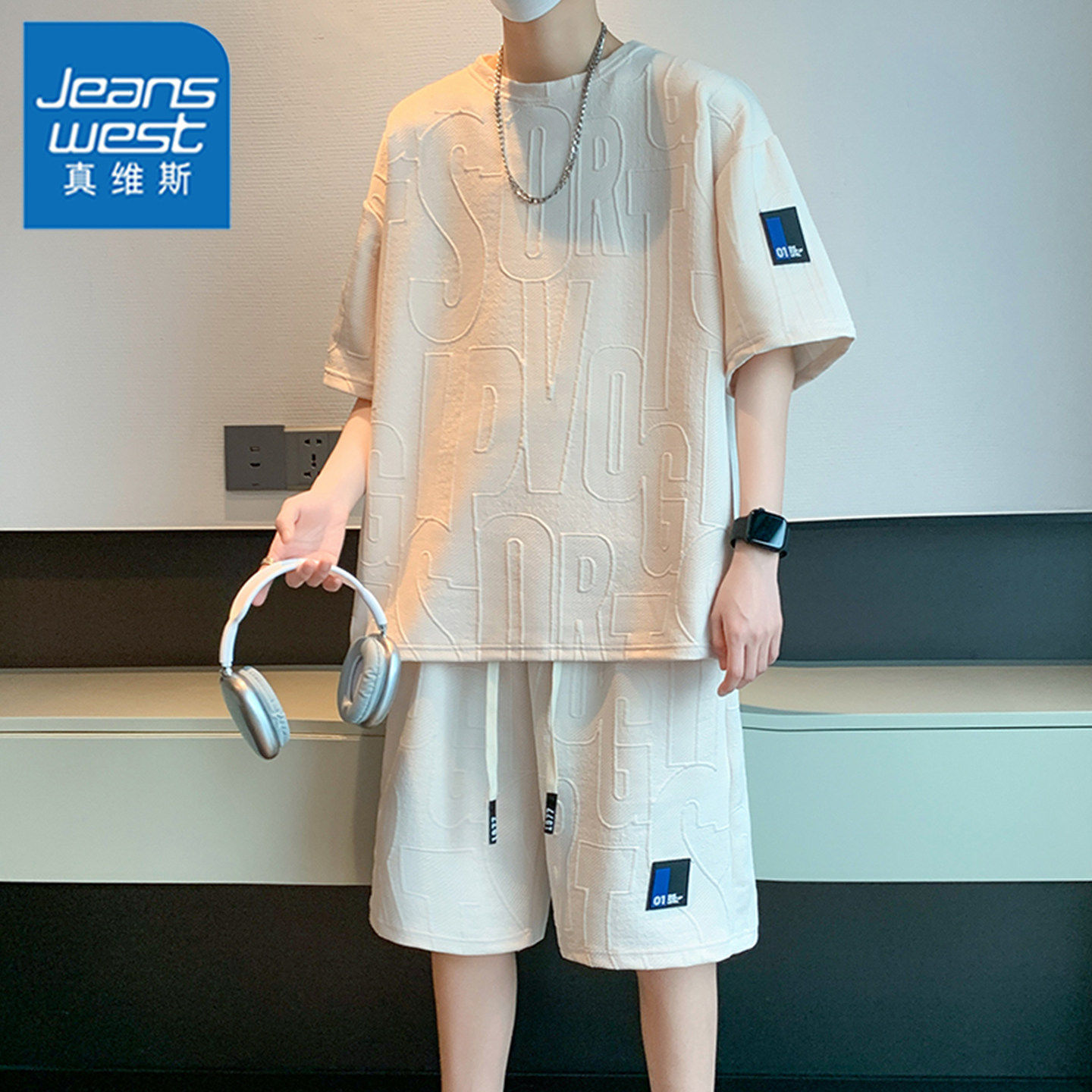 休闲套装 加肥加大胖子穿搭套装 男宽松大码 t恤短裤 短袖 真维斯夏季