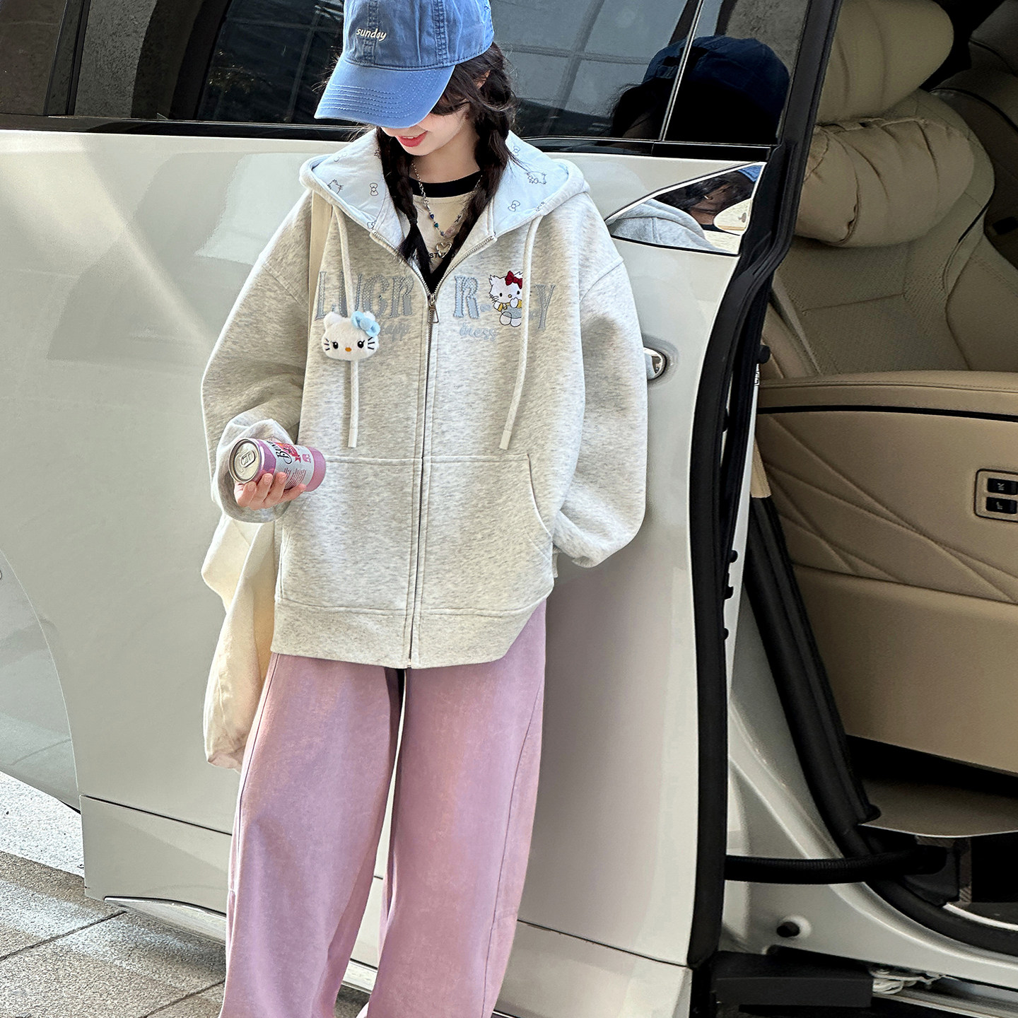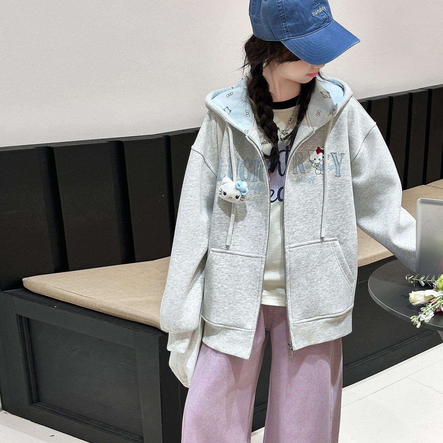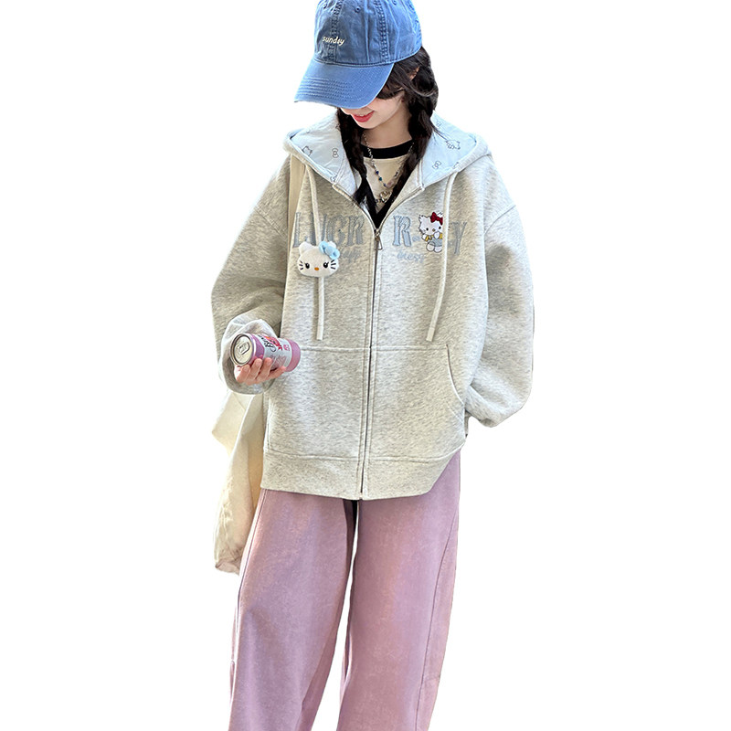 洋气儿童连帽凯蒂猫卫衣中大童上衣拉链衫 女童外套春秋装 2026新款