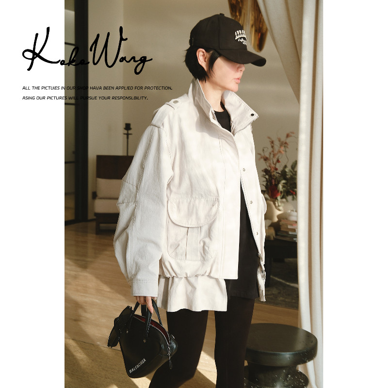 工装 低腰线早春设计感手袖 风宽松夹克外套N0015L30W01 WANG KOKO