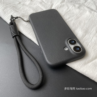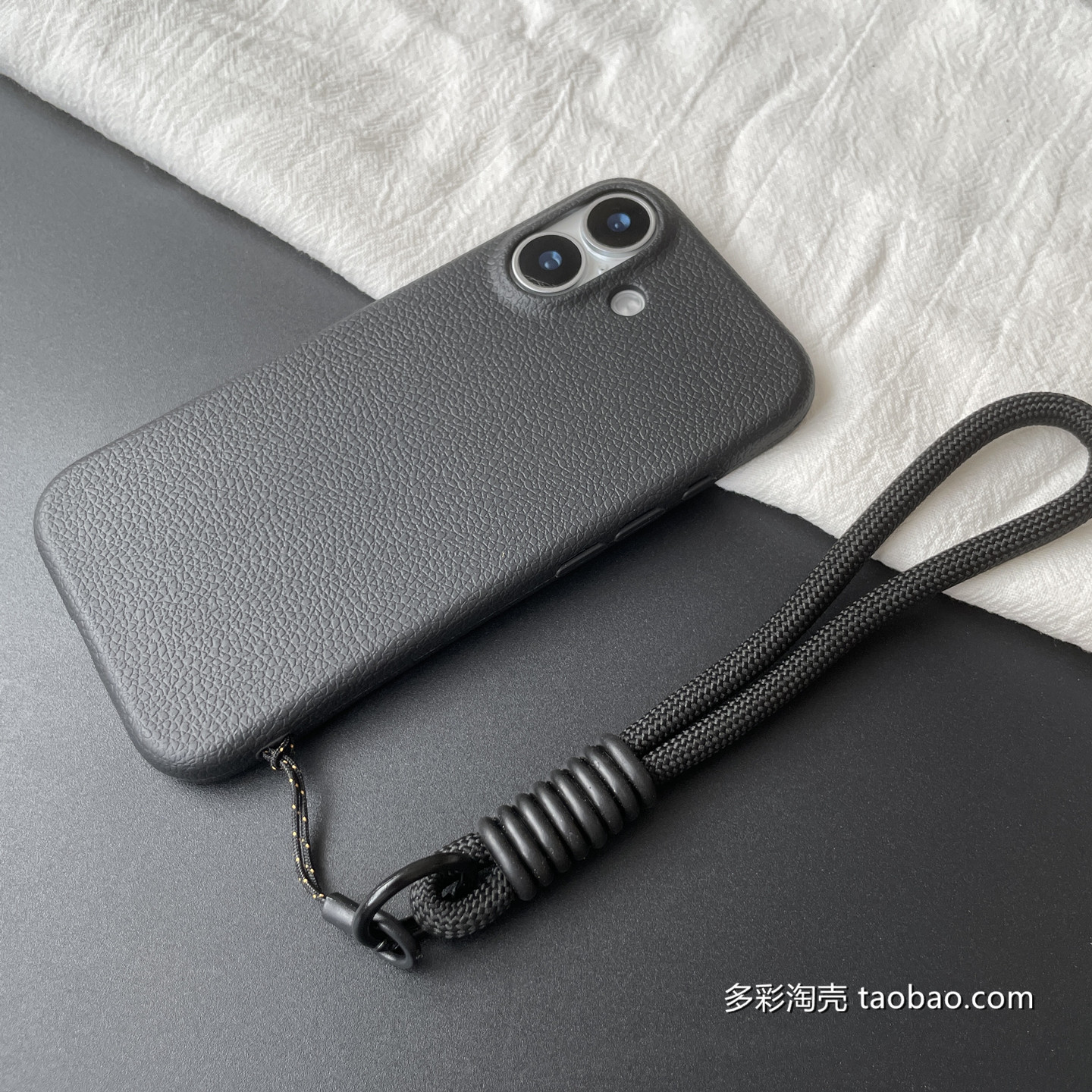 经典 15pro防摔14大孔镜头13保护套17pro皮纹12软11男女手腕便携 黑适用iphone16promax手机壳挂绳17高级感新款
