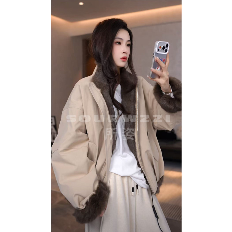 aaaaxbbb 狐狸毛领派克服白鸭绒羽绒服秋冬保暖上衣外套 飞行周末