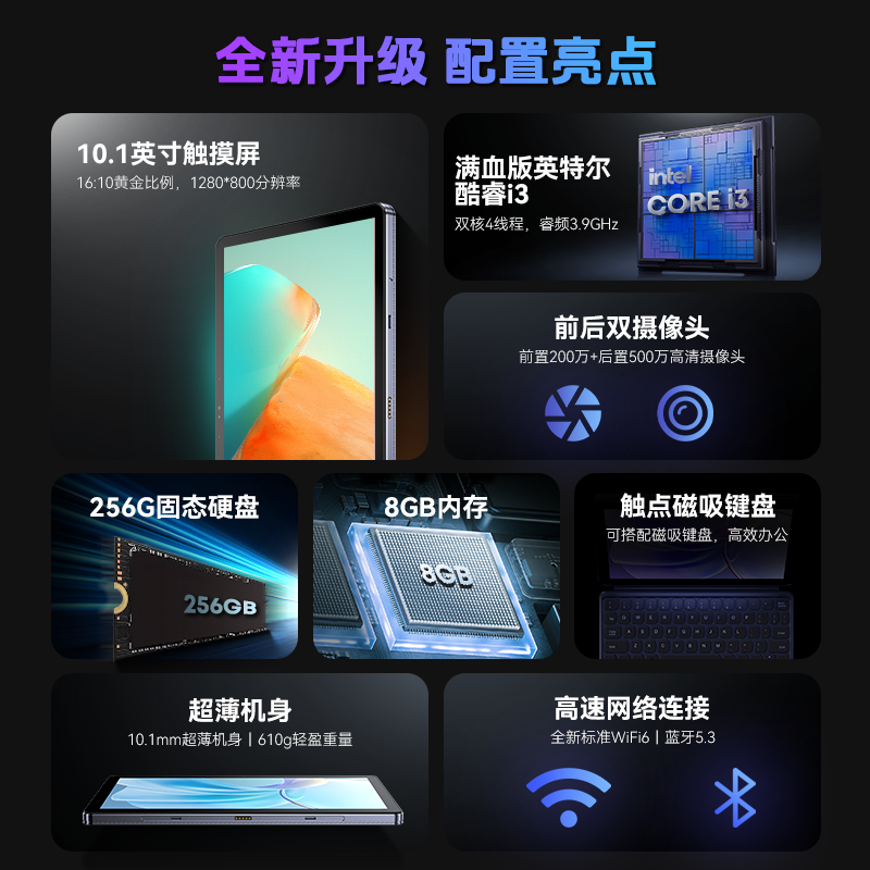 二合一笔记本电脑英特尔酷睿i3处理器10.1英寸触控屏轻薄办公学生网课平板电脑 驰为CHUWI Hi10