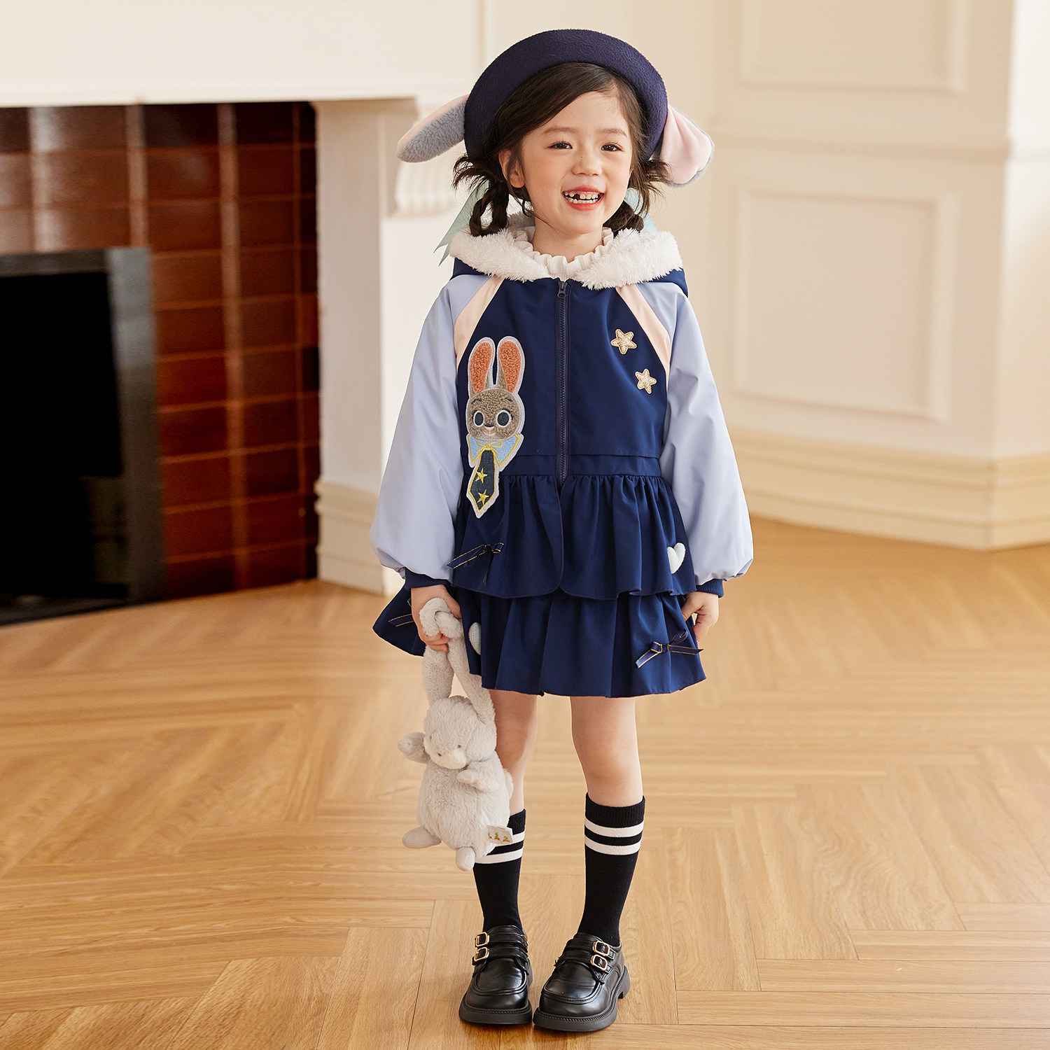 慵懒风派克服棉服 藏青色复古加厚夹棉连帽外套女胖mm美式 大码 女装