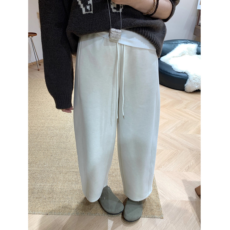 小矮个子秋冬加厚羊绒奶奶裤 xxs 女150九分抽绳高腰宽松阔腿弯刀裤