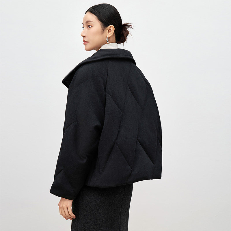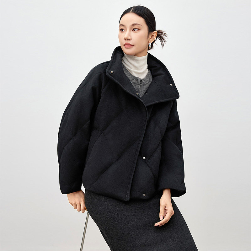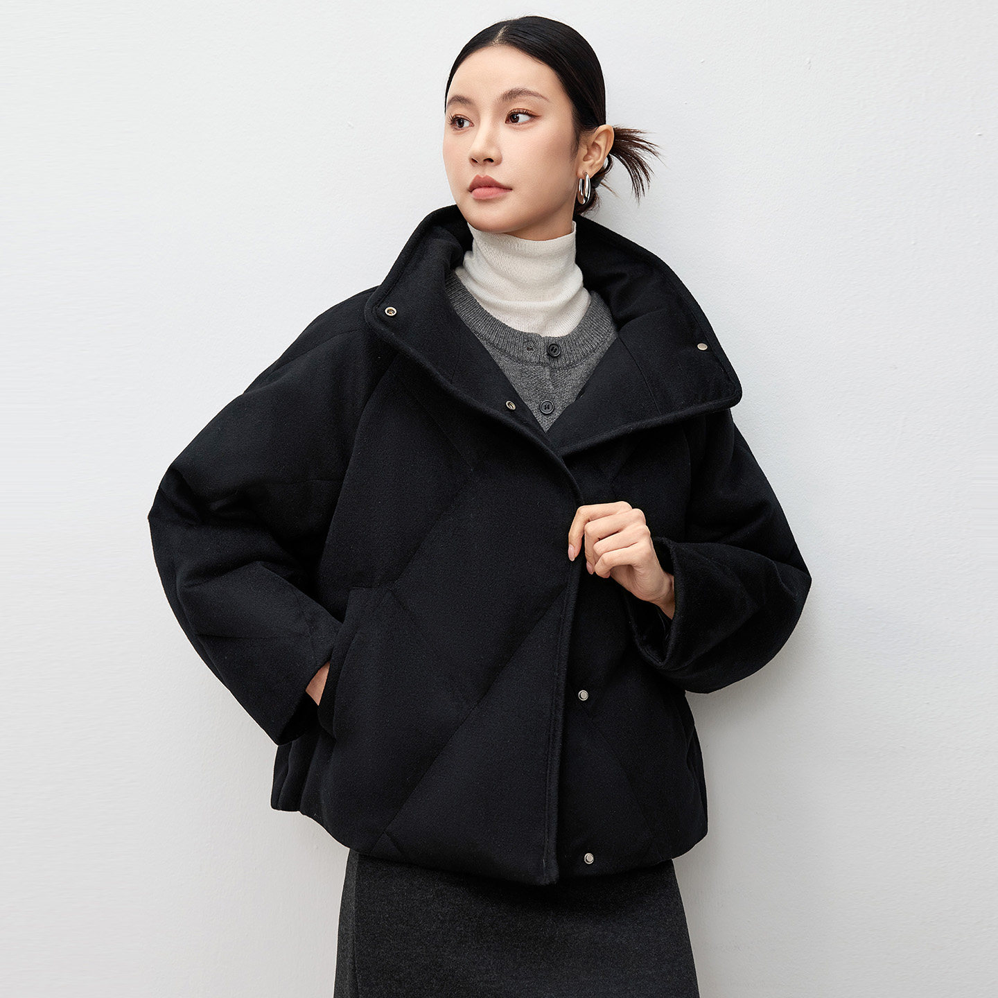 小个子外套绵羊毛95白鹅绒菱格暗扣防钻绒轻薄羽绒服 立领 短款