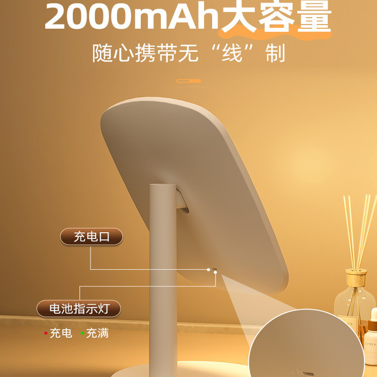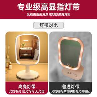 化妆镜带灯led台式 桌面可立卧室镜子智能美妆镜补光网红轻奢高级