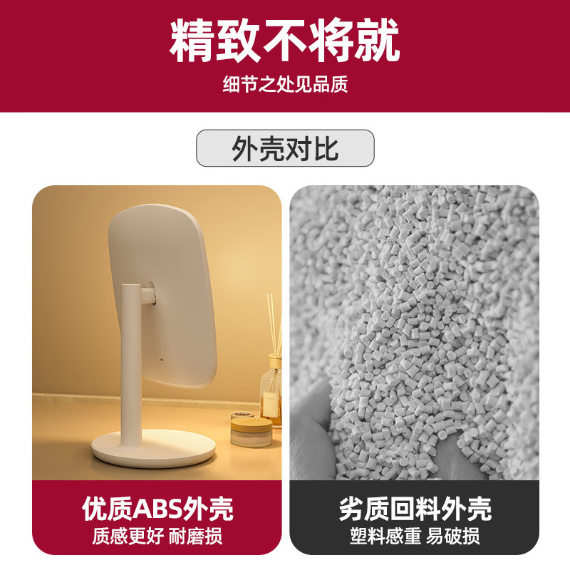 学生宿舍桌面梳妆镜带灯家用梳妆台镜子led镜子办公室台式 化妆镜