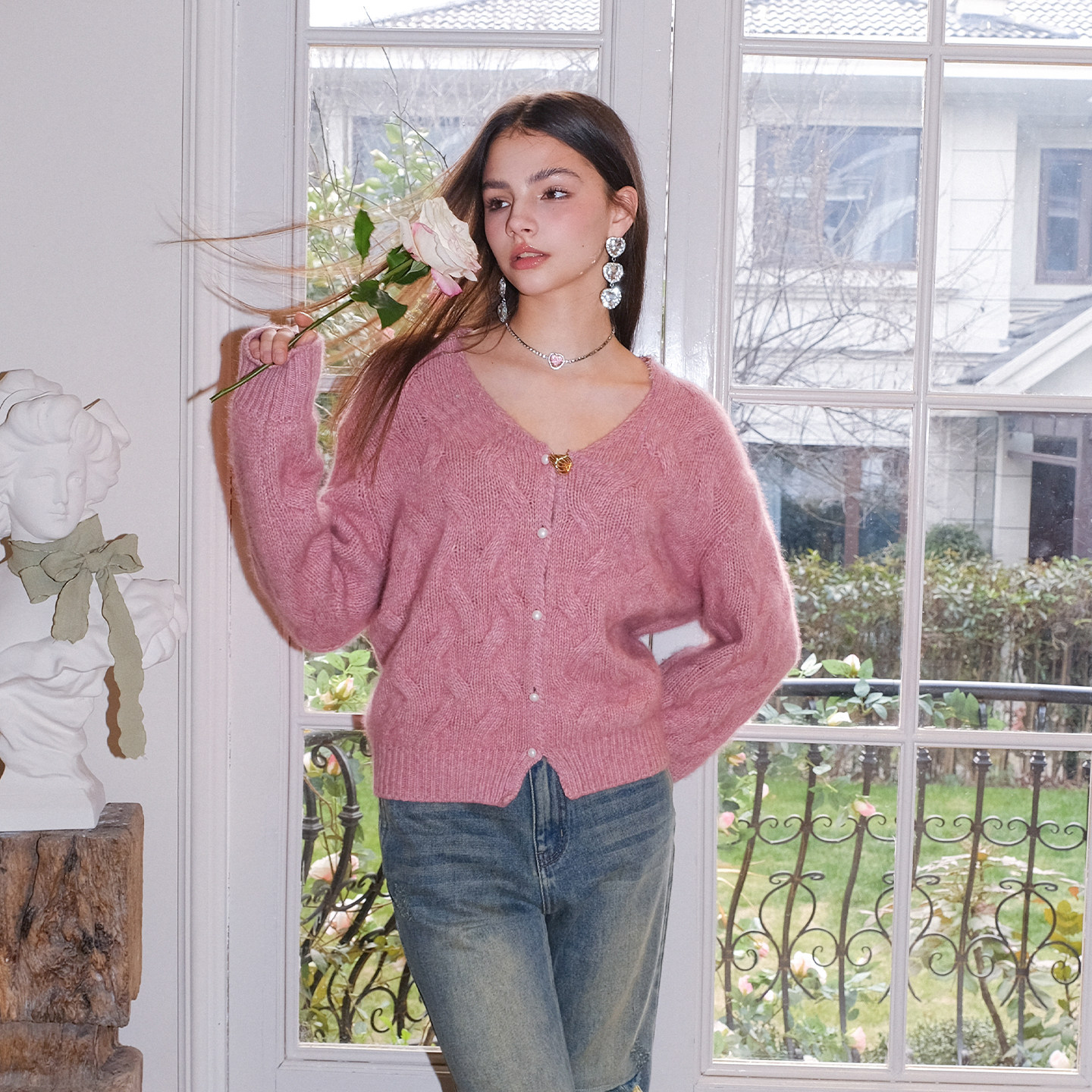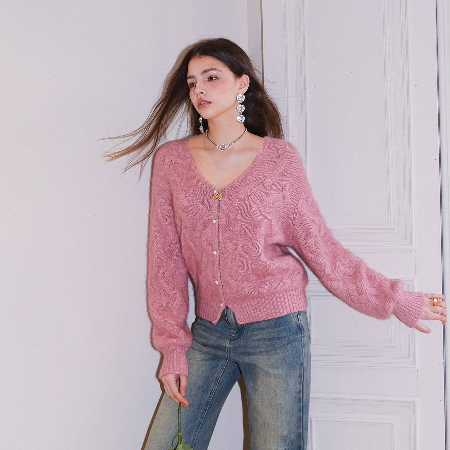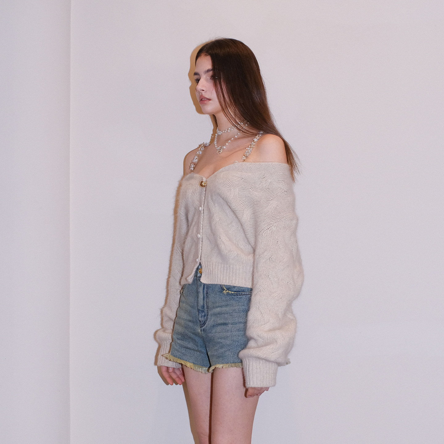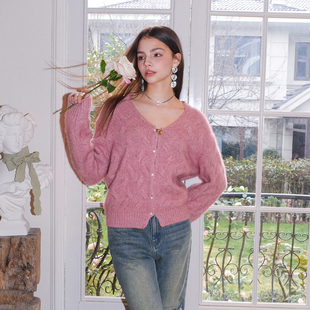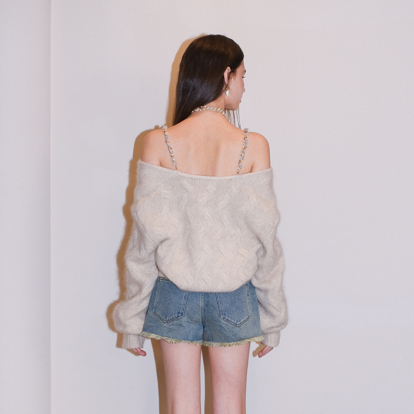 一字肩吊带针织开衫 DIANAVEVINA25冬新款 女V领毛衣 黄霄雲同款