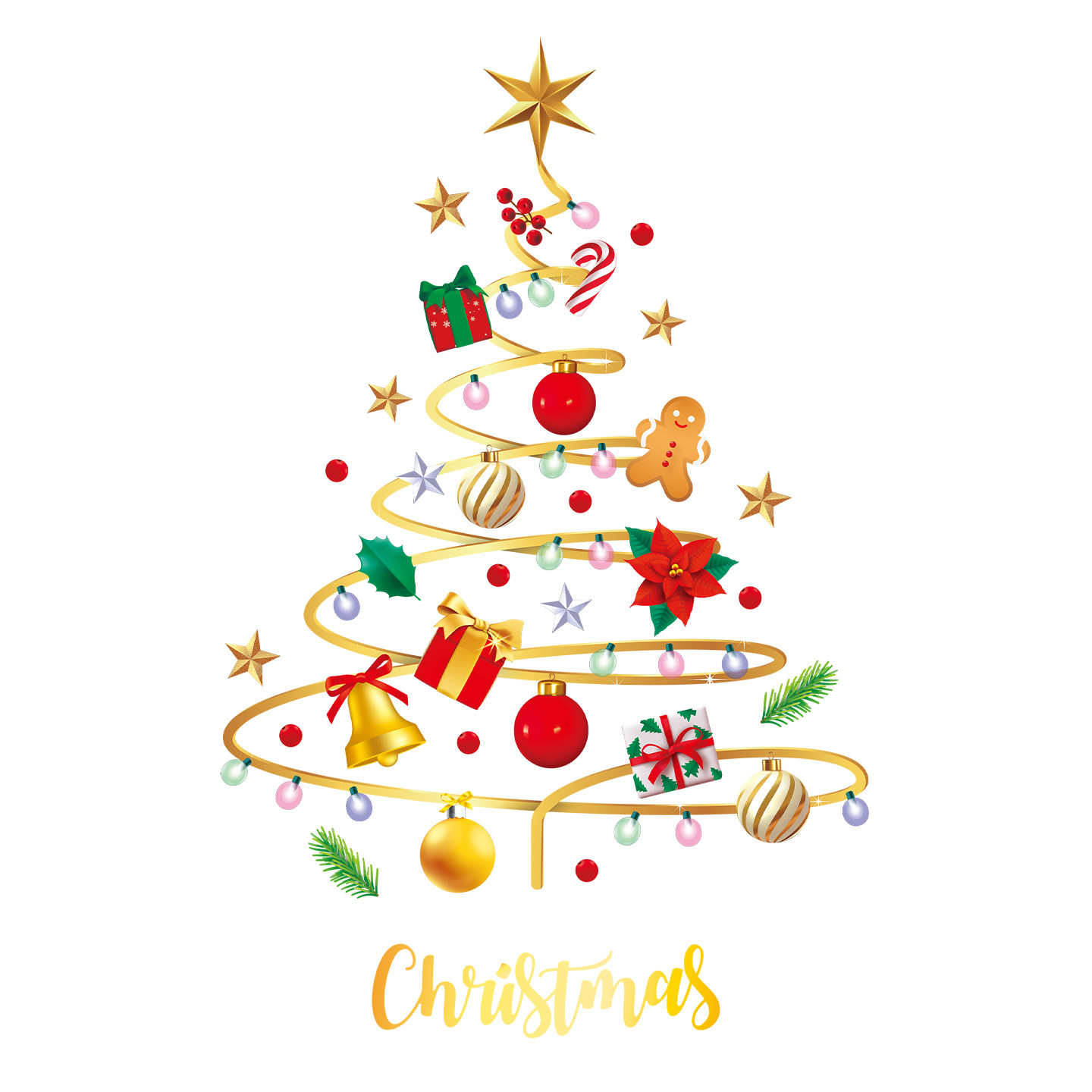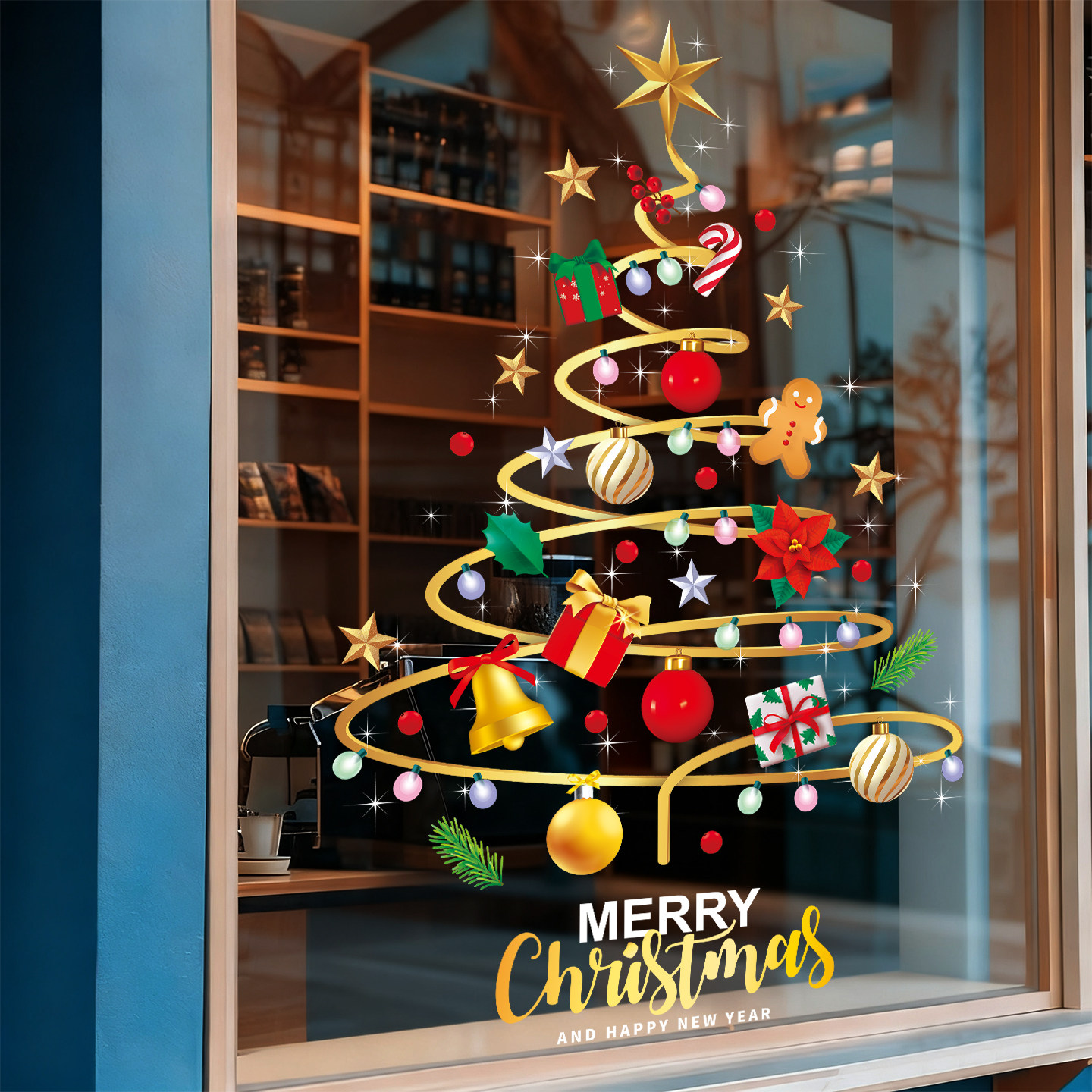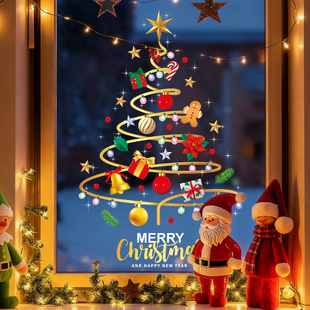 圣诞节场景布置玻璃贴纸立体感彩色圣诞树窗花贴装 扮店铺橱窗门贴