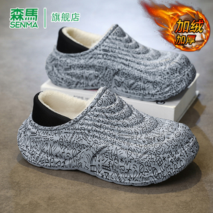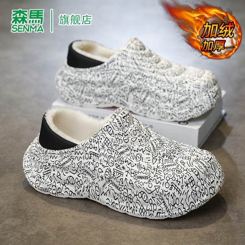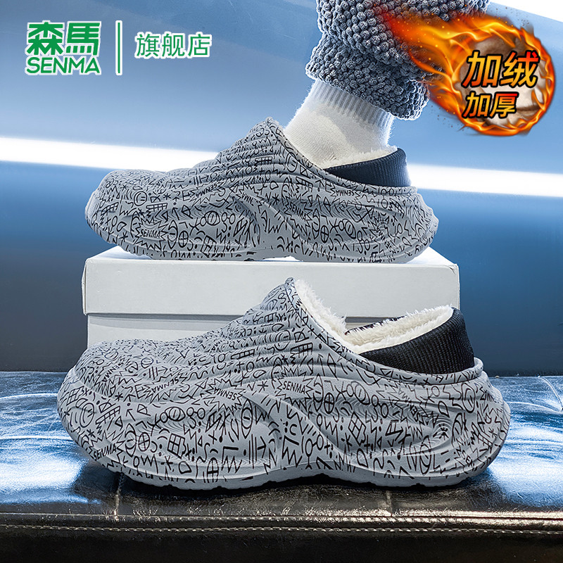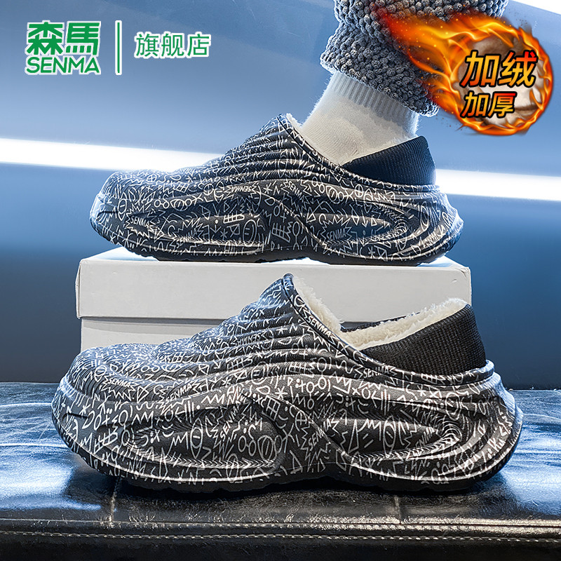 居家外穿防滑防水包跟棉鞋 森马棉拖鞋 保暖加绒加厚男士 新款 男冬季