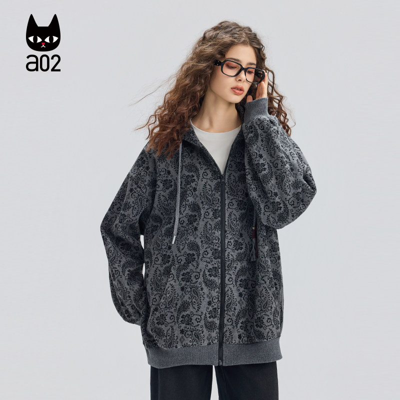 加厚卫衣外套冬装 冬季 上衣 女2025新款 a02宽松腰果花连帽针织衫