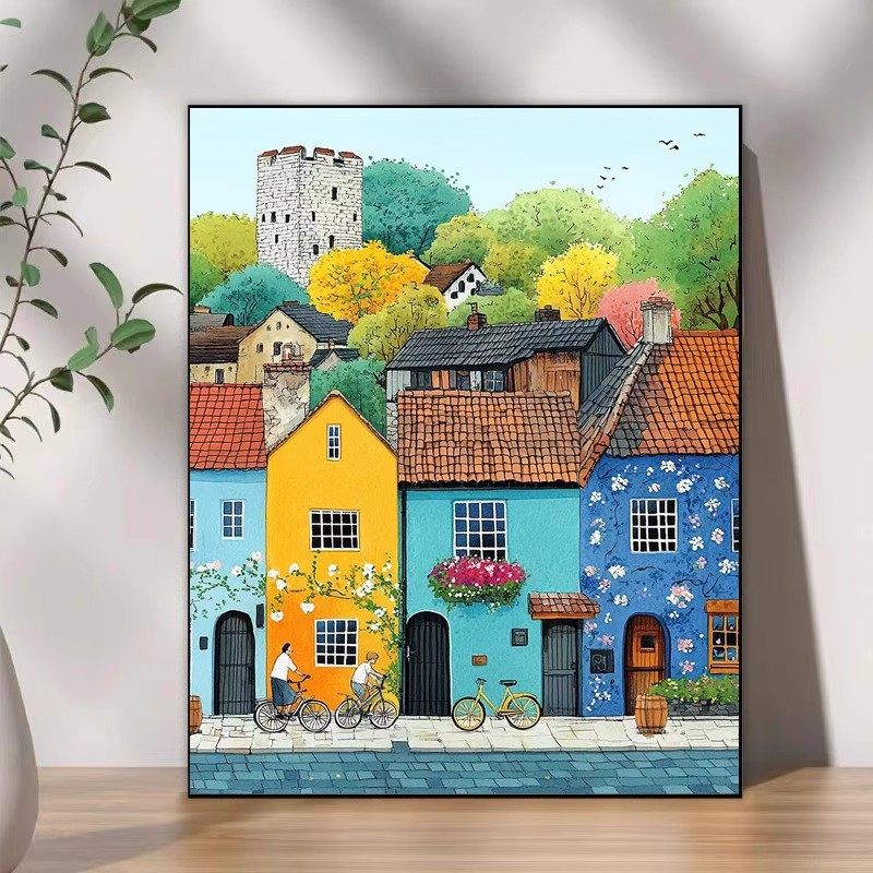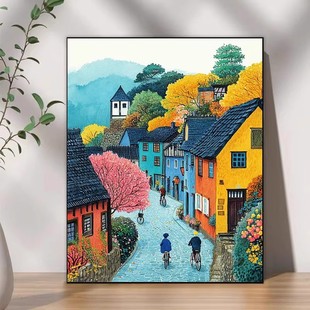 七彩小镇装 饰画成品仿油画风景兼职清新唯美田园风卧室客厅摆挂画