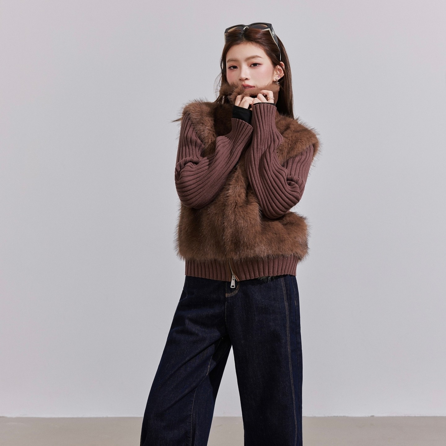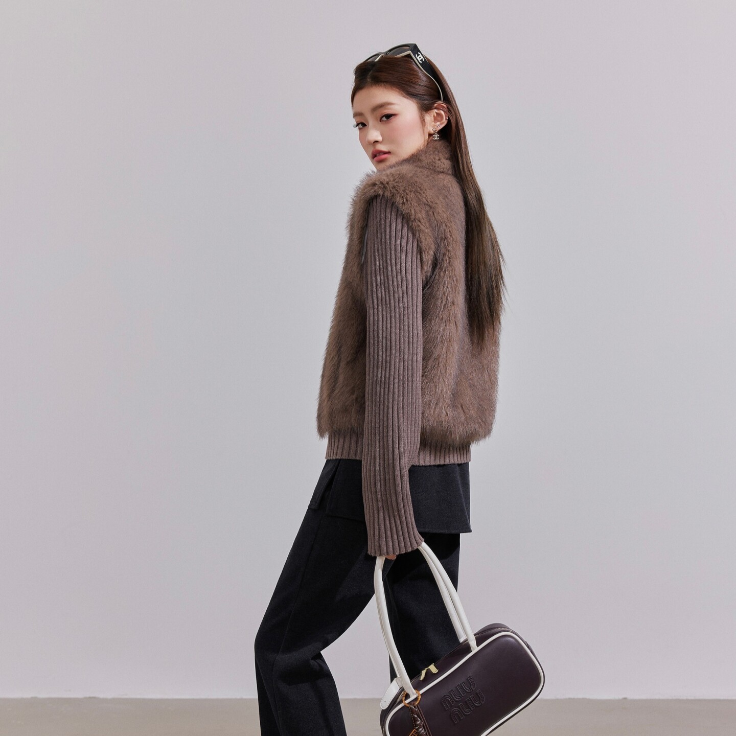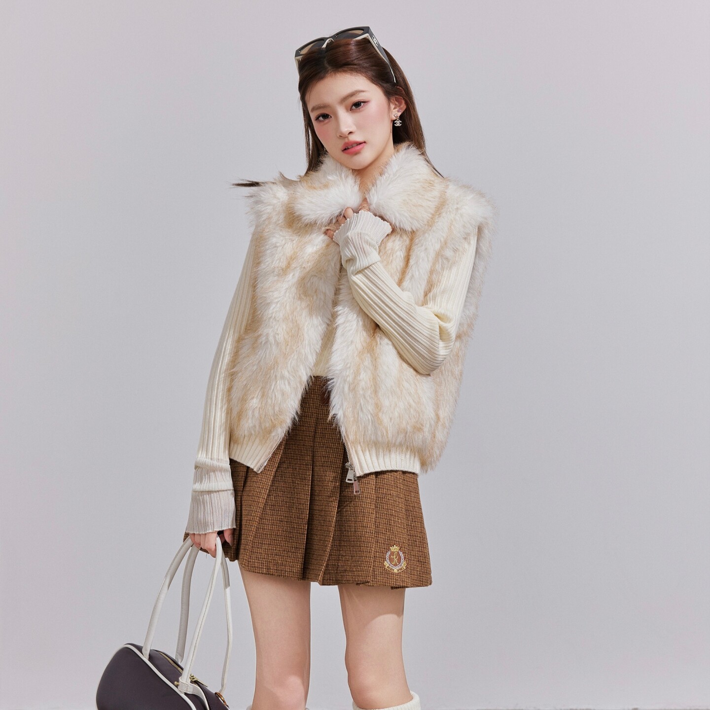 OTEBANBASS 皮草翻领外套女 25SS美拉德环保皮草两穿拼接针织开衫