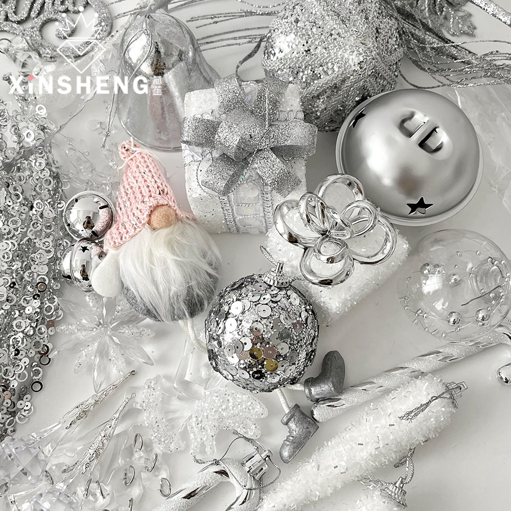 饰挂件礼物花束搭配花艺资材 氛围感圣诞树装 芯苼 圣诞节银色系列