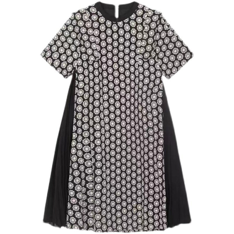 重工刺绣图案女潮 拼接网纱百褶中长款 孕妇连衣裙夏季 百搭圆领时尚