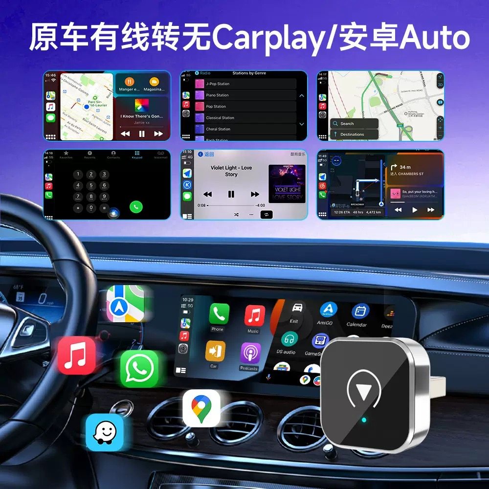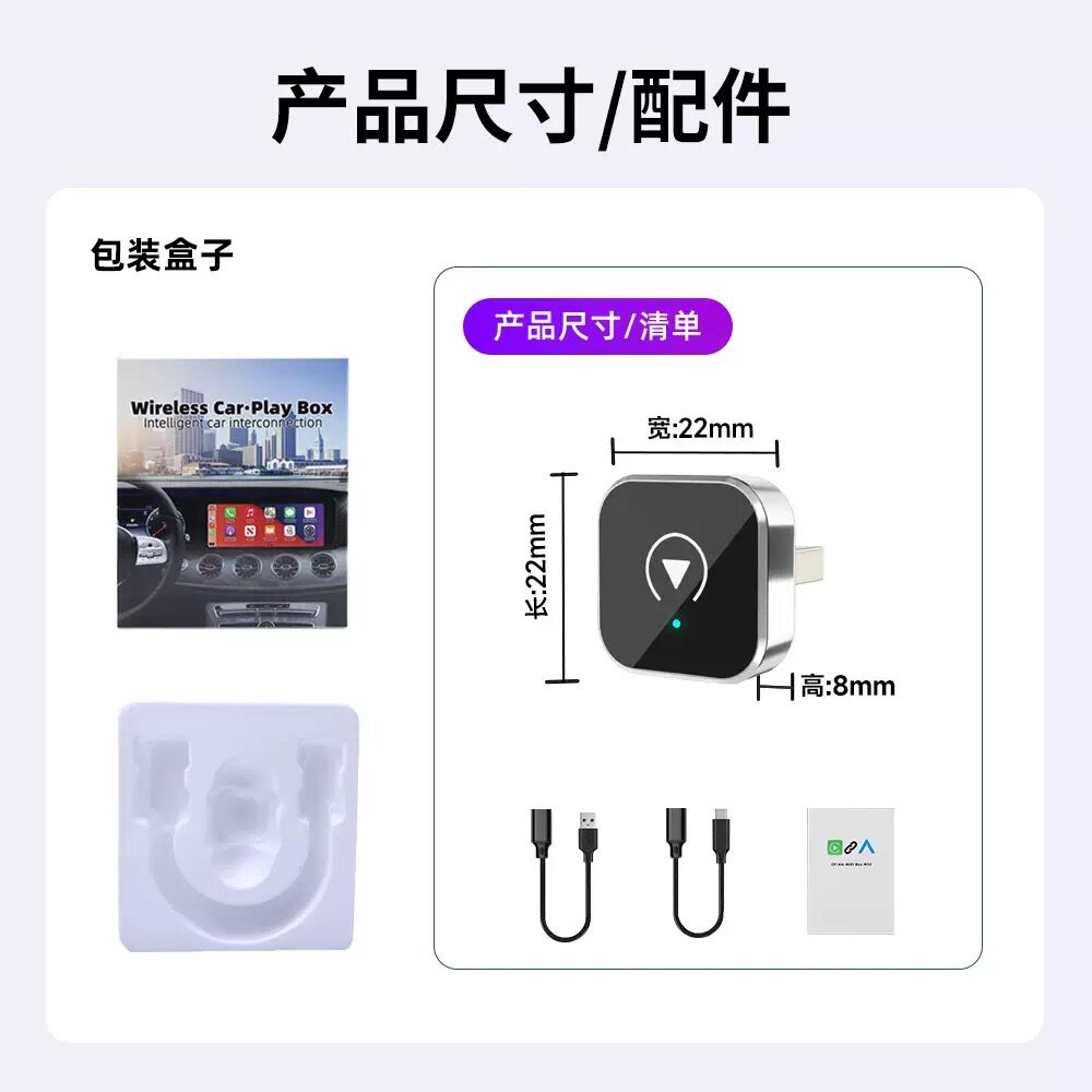 跨境carplay盒子智能2in1车机互联Auto盒子有线转无线车载转换器