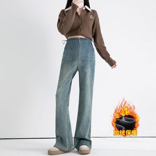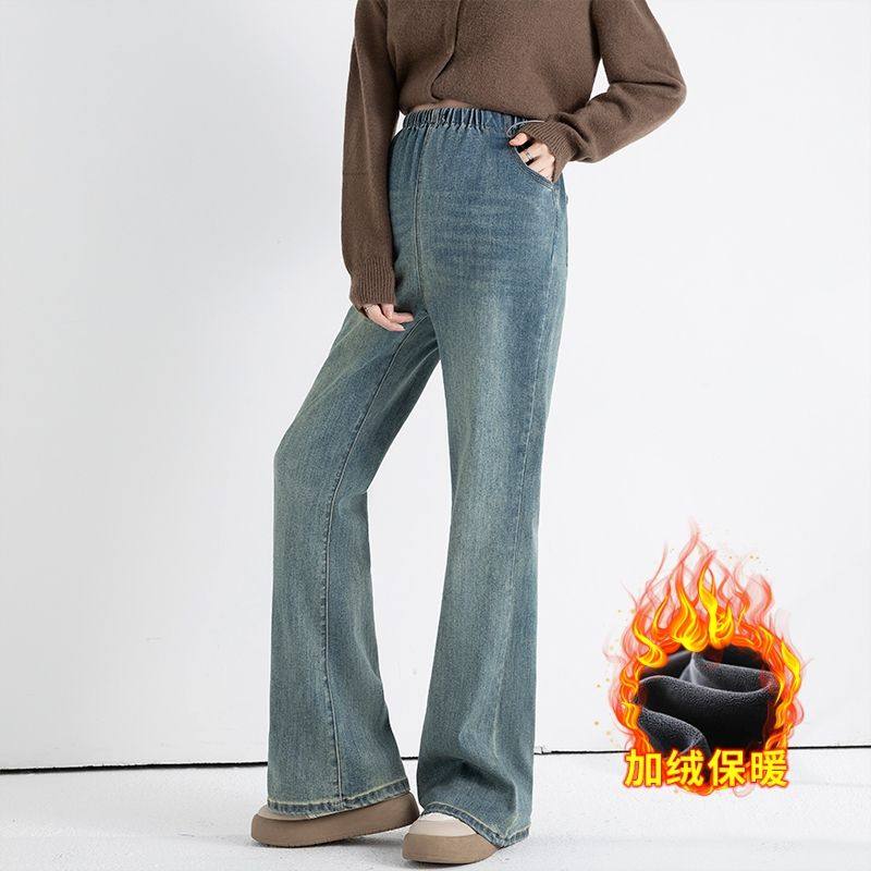 秋冬款 百搭拖地裤 加绒加厚牛仔裤 孕期显瘦弹力微喇叭裤 韩版 孕妇装