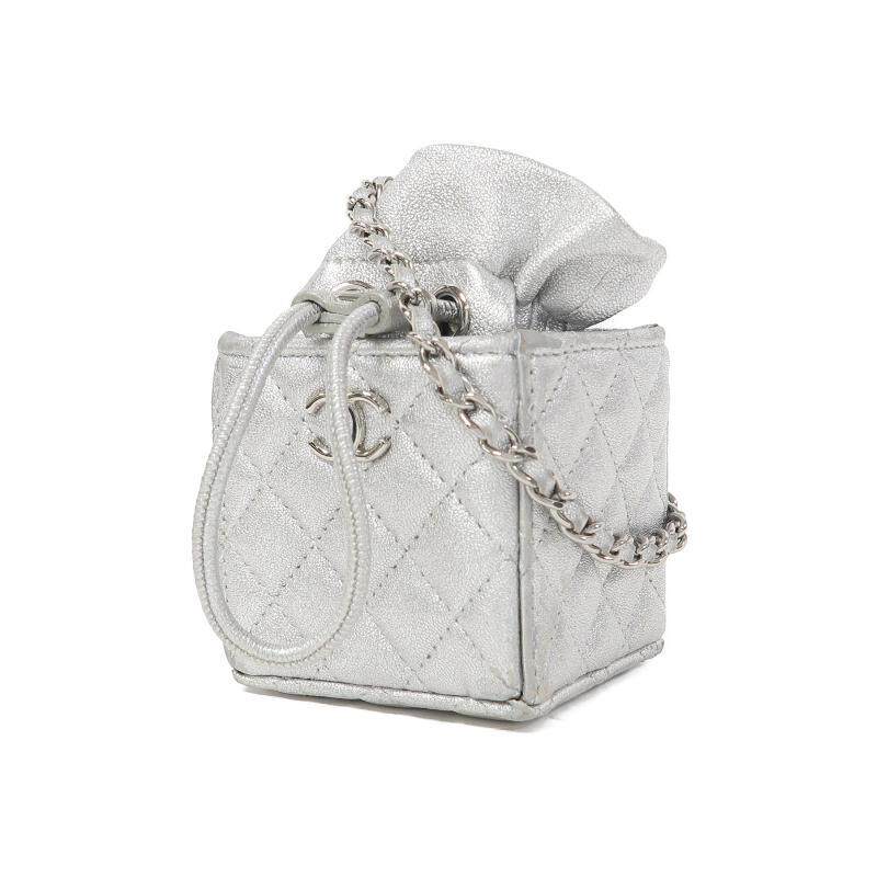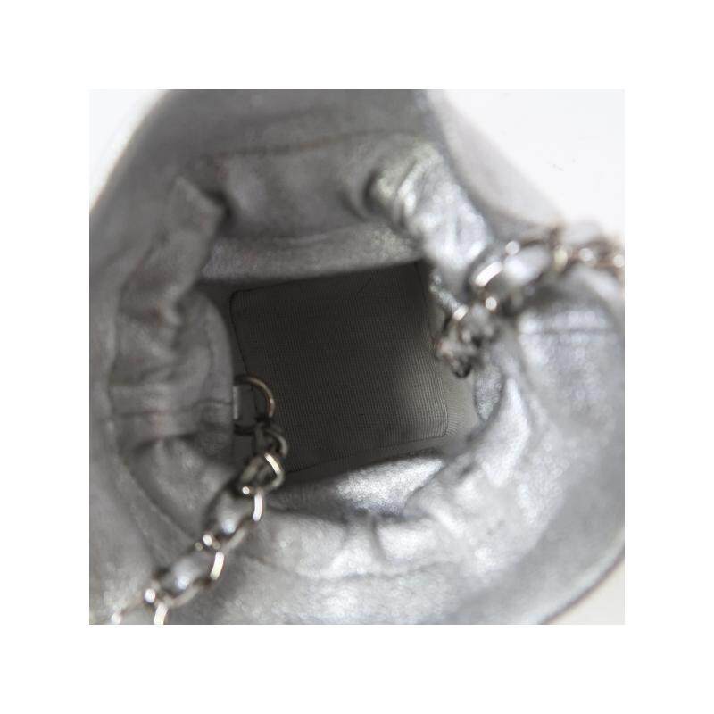 中古Chanel香奈儿女包A级95新Bucket Bag水桶包羊皮斜挎包银色HK