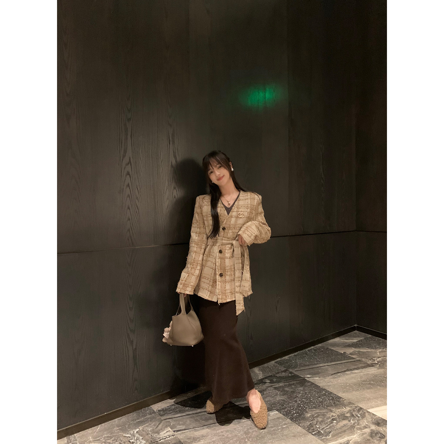 珍妮旅途~素雅大气好质感百搭羽绒内胆编织小香风外套 吴大笑