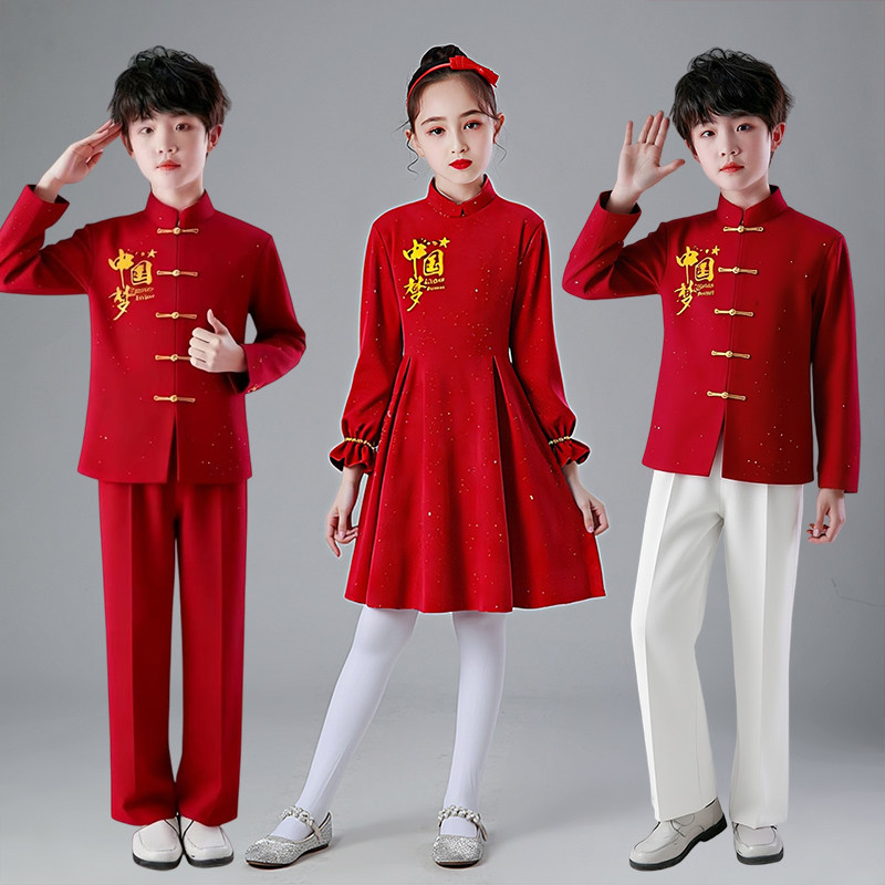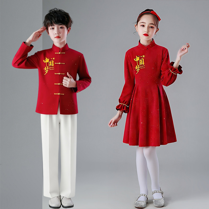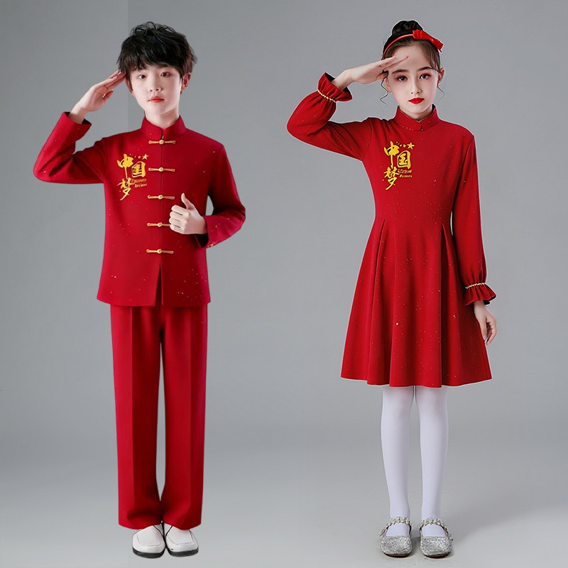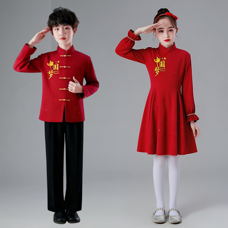 儿童大合唱演出服小学生爱国红歌表演服装 旦男女童诗歌朗诵礼服 元