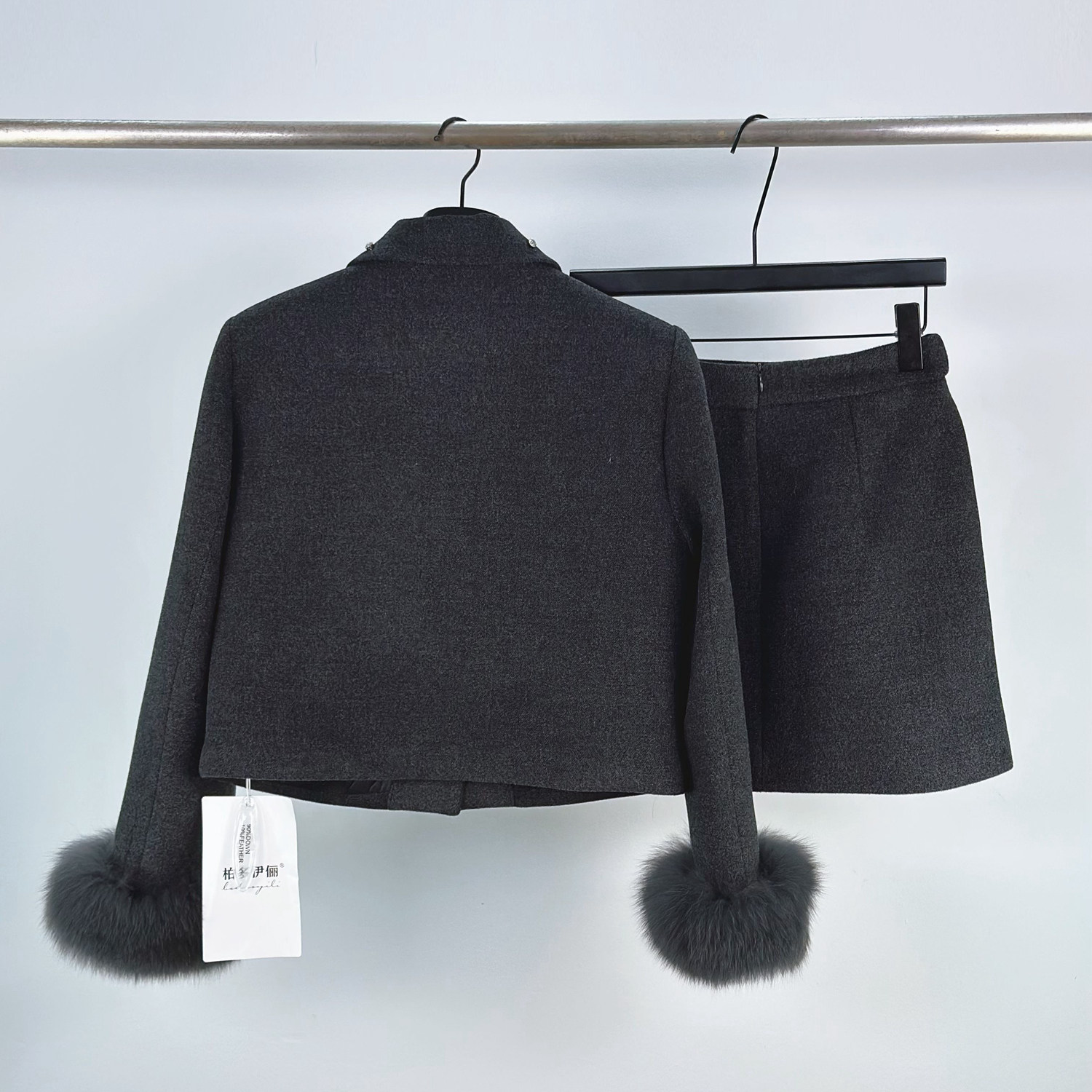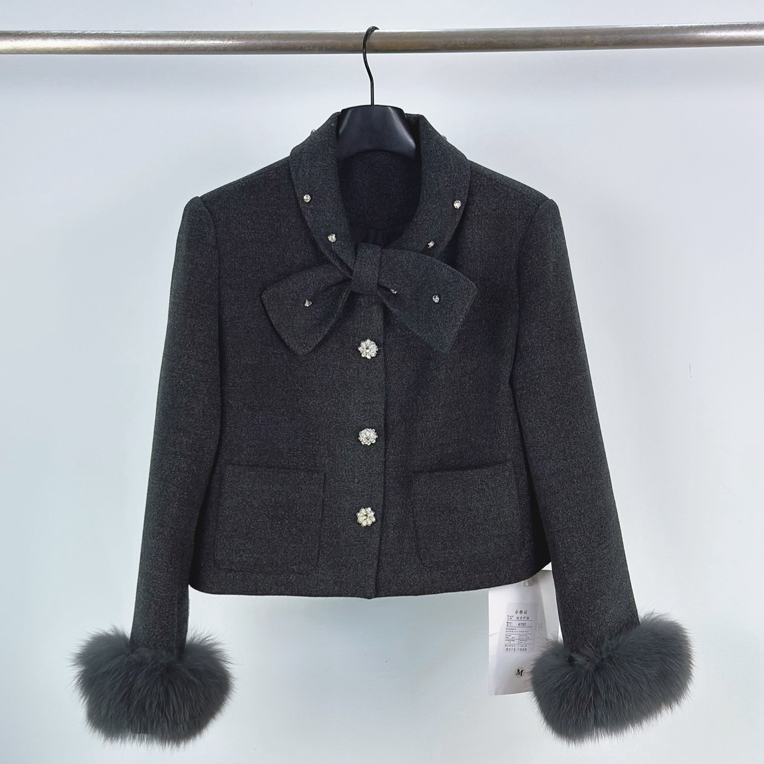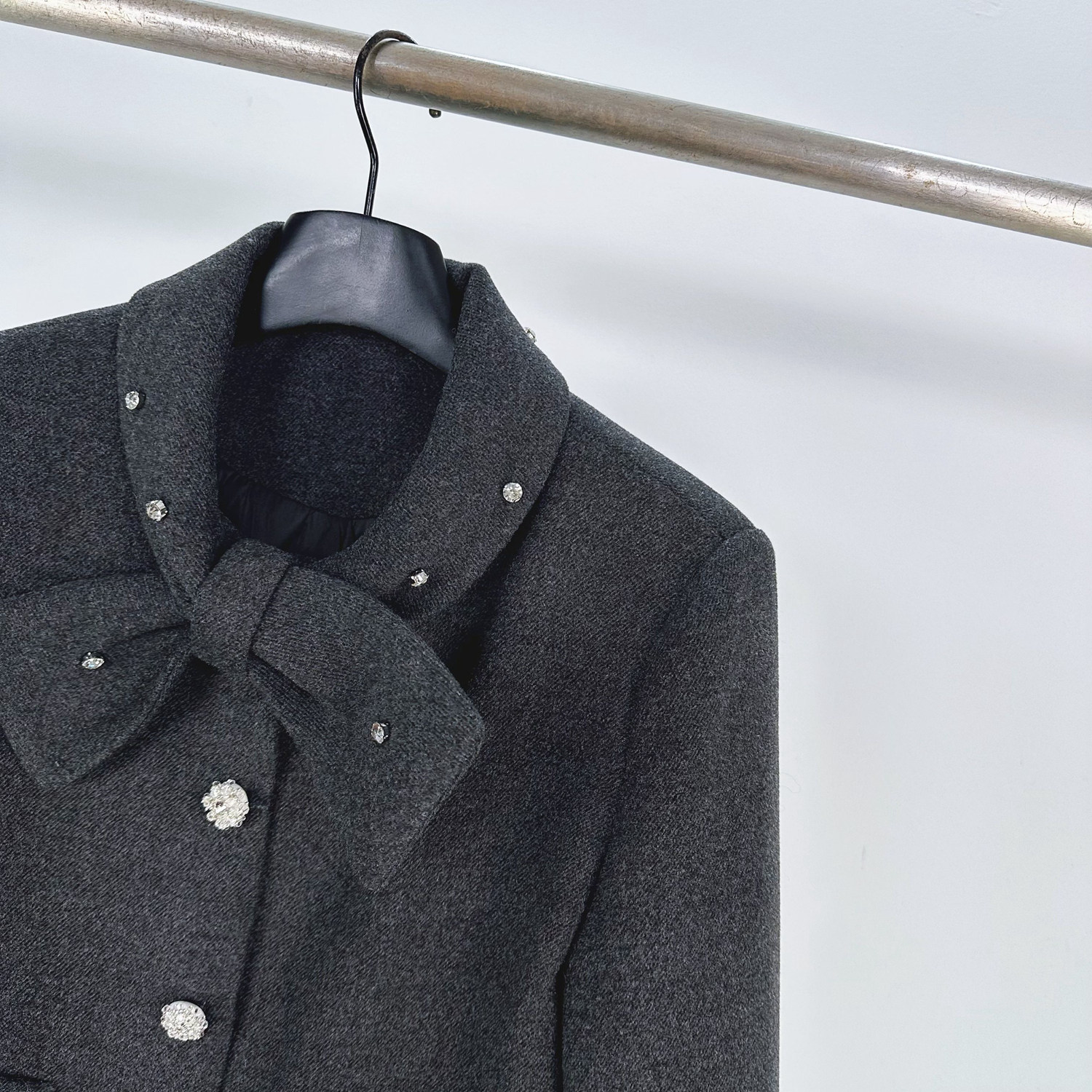 6792蝴蝶结钉珠西服外套半身裙两件套女冬小香风气质名媛轻奢套装