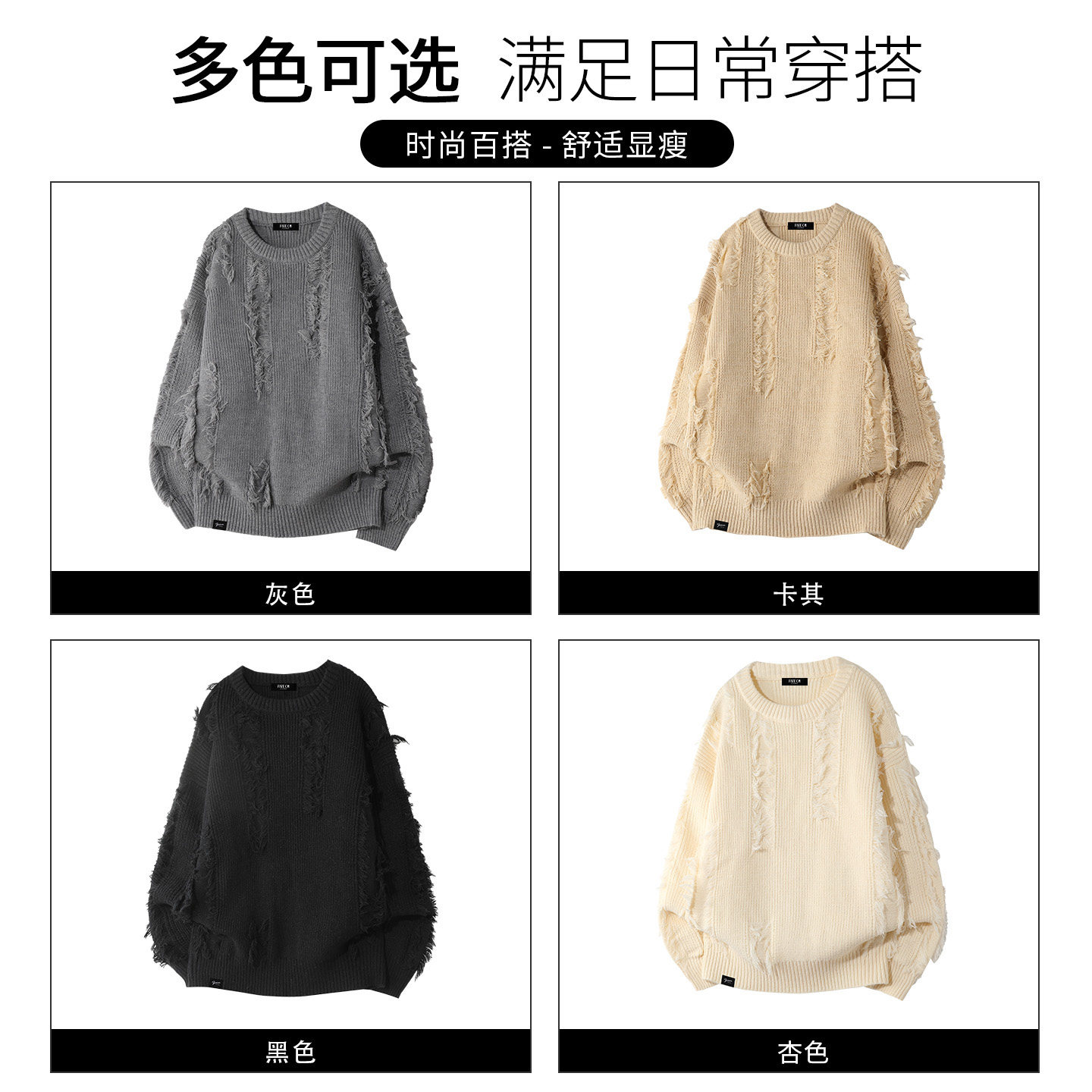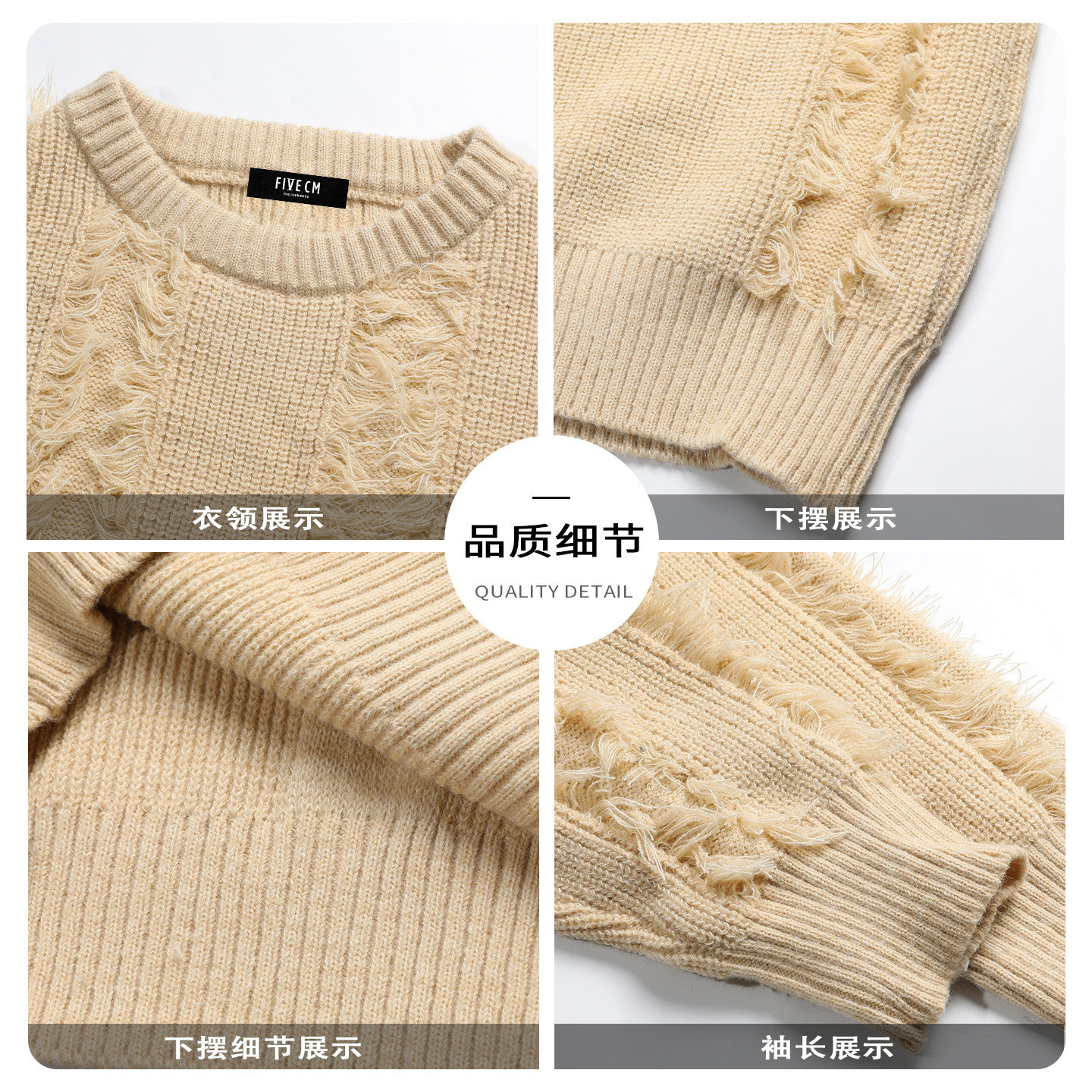 5cm 加厚休闲针织衫 FIVECM复古流苏圆领毛衣男士 情侣款 秋冬季