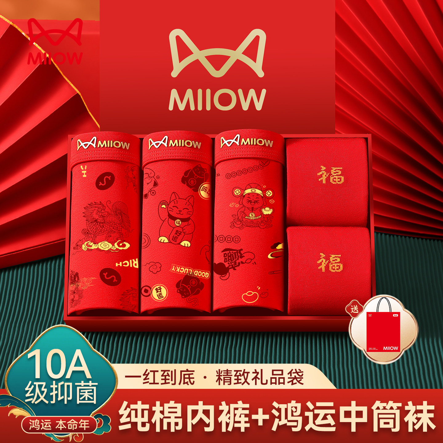 2026马年新款 男四角平角短裤 结婚礼物 本命年红色内裤 猫人纯棉男士