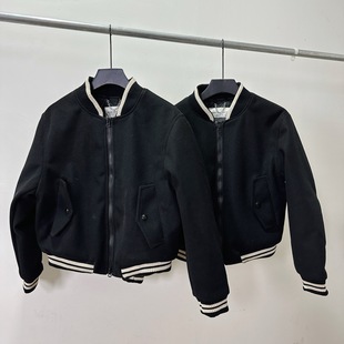 范洛Fano 复古学院风刺绣减龄毛呢料设计感上衣 棒球服外套女春季