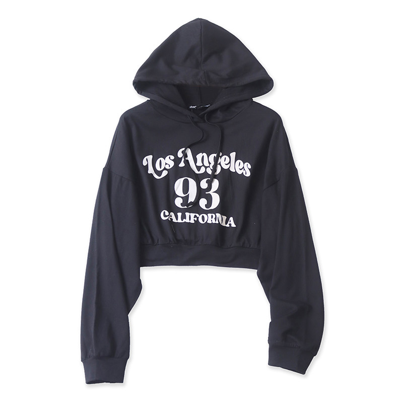 连帽套头抓绒宽松时尚 新款 上衣 高腰卫衣冬季 外贸欧美单女生短款
