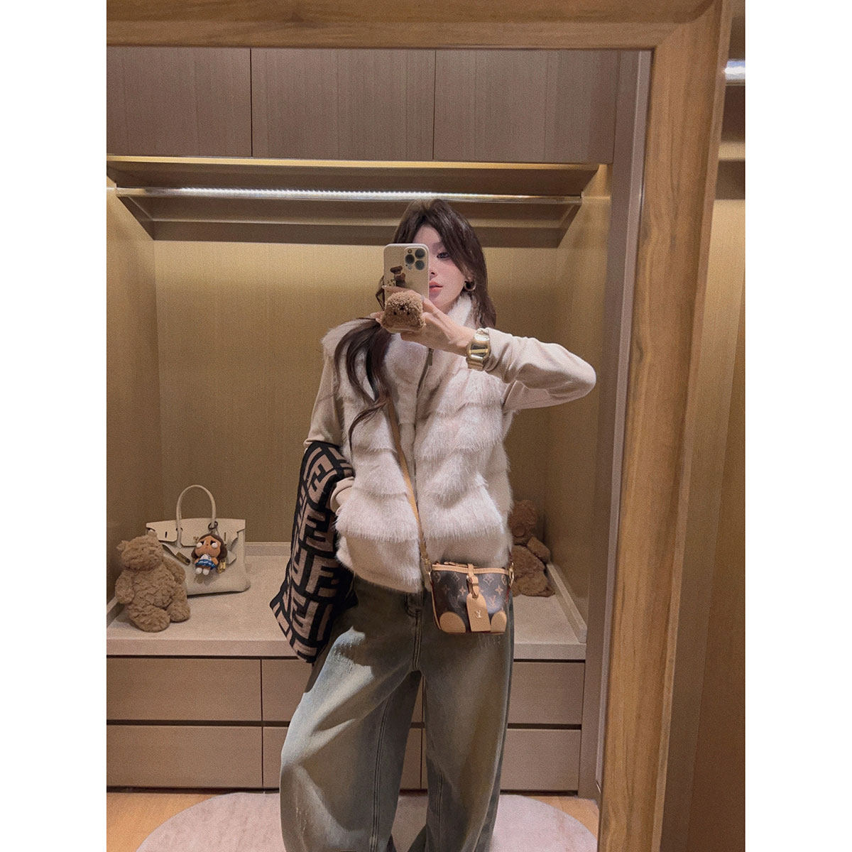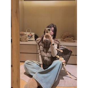 复古洋气提花针织开衫 马甲女秋冬圆领慵懒风宽松休闲叠穿坎肩背心