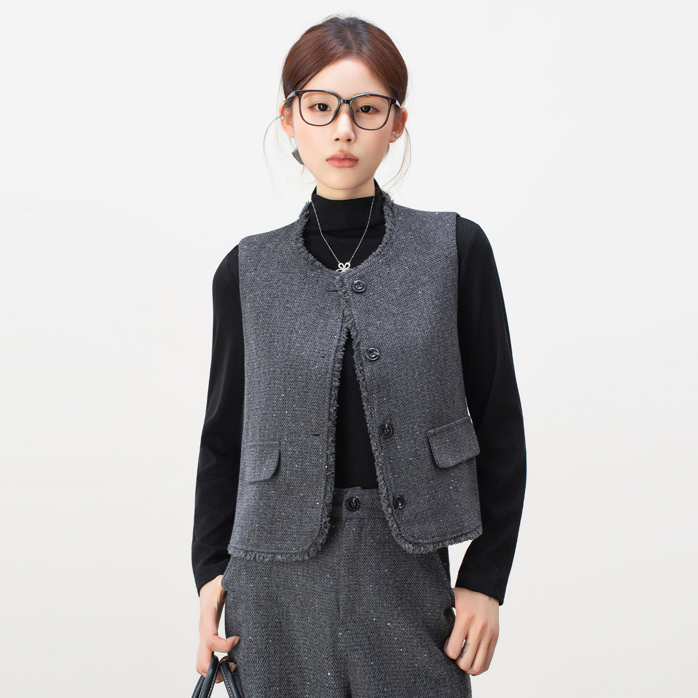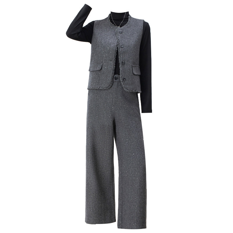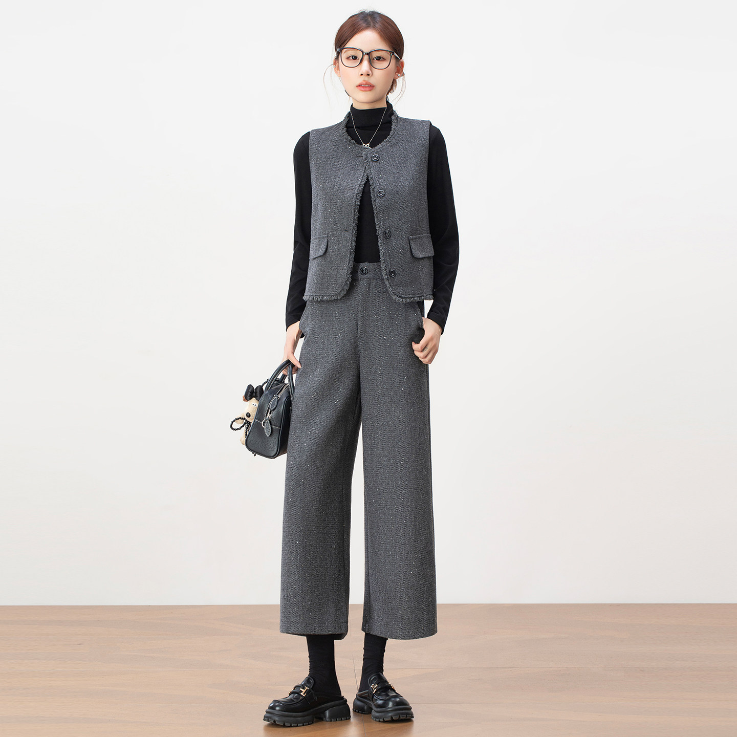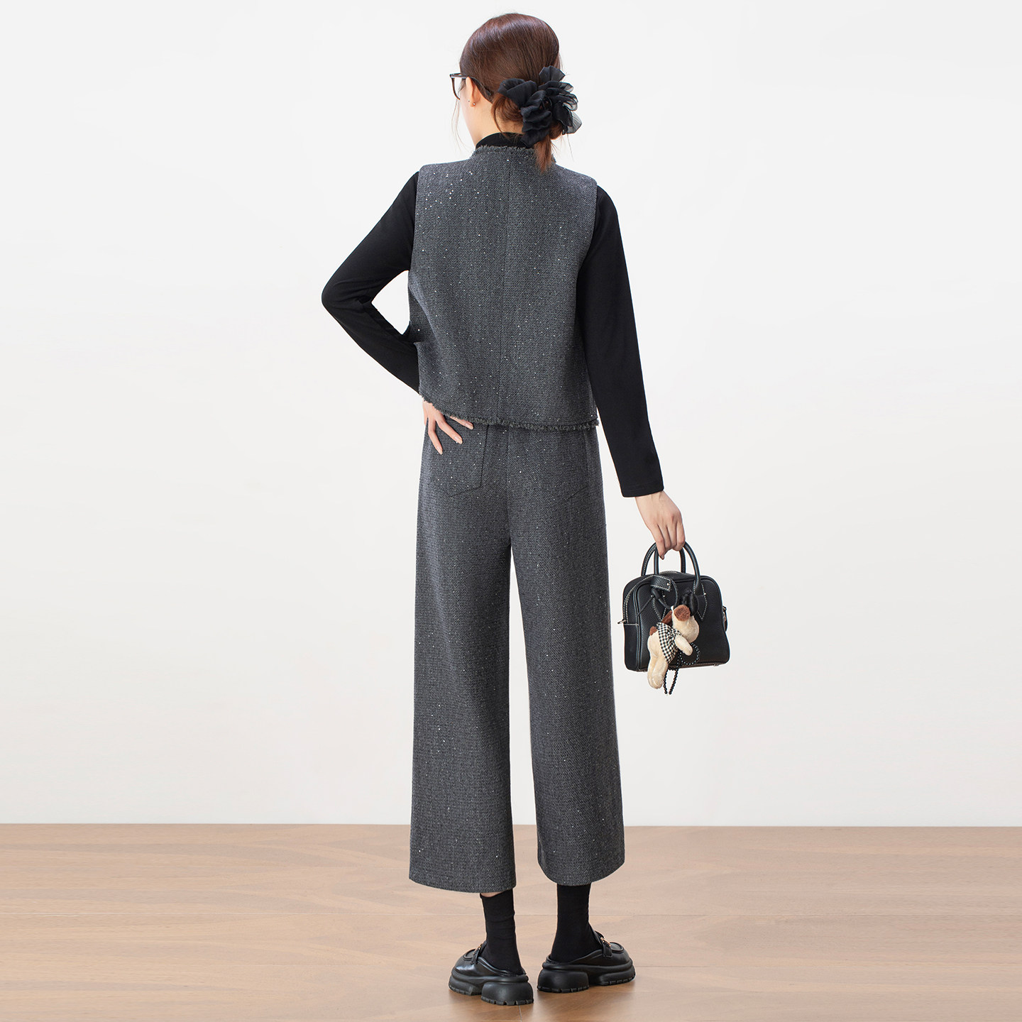 阔腿裤 小个子时尚 小香风马甲外套打底衫 女秋冬2025新款 三件套 套装