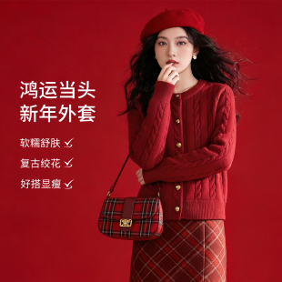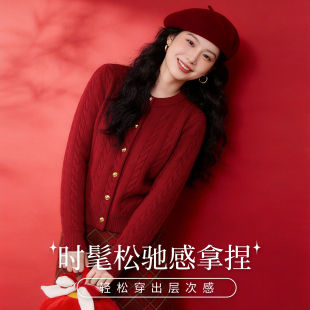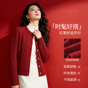 雪中飞红色毛衣开衫 2026含绵羊毛新年拜年服本命马年衣服PC 女春装