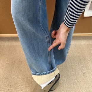 磨毛 显瘦裤 Navigare意大利小帆船蓝色阔腿牛仔裤 新款 子 女秋冬季