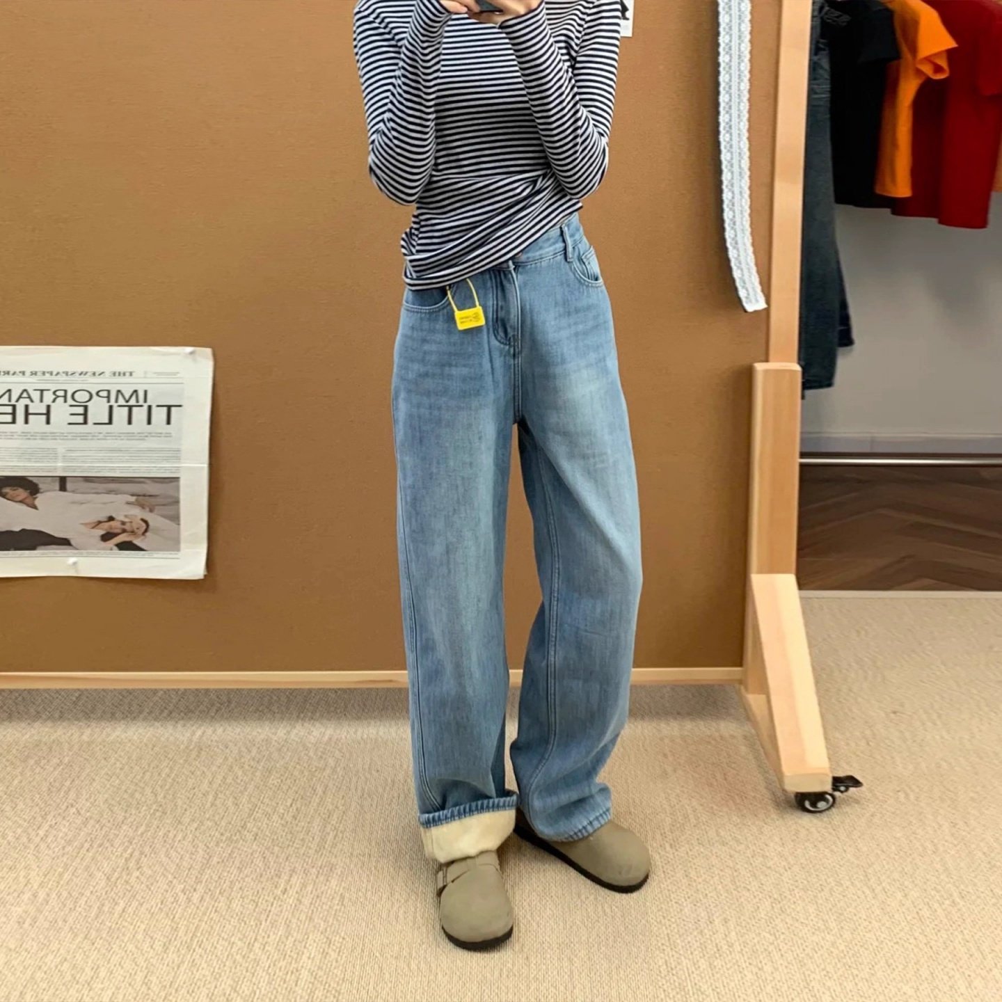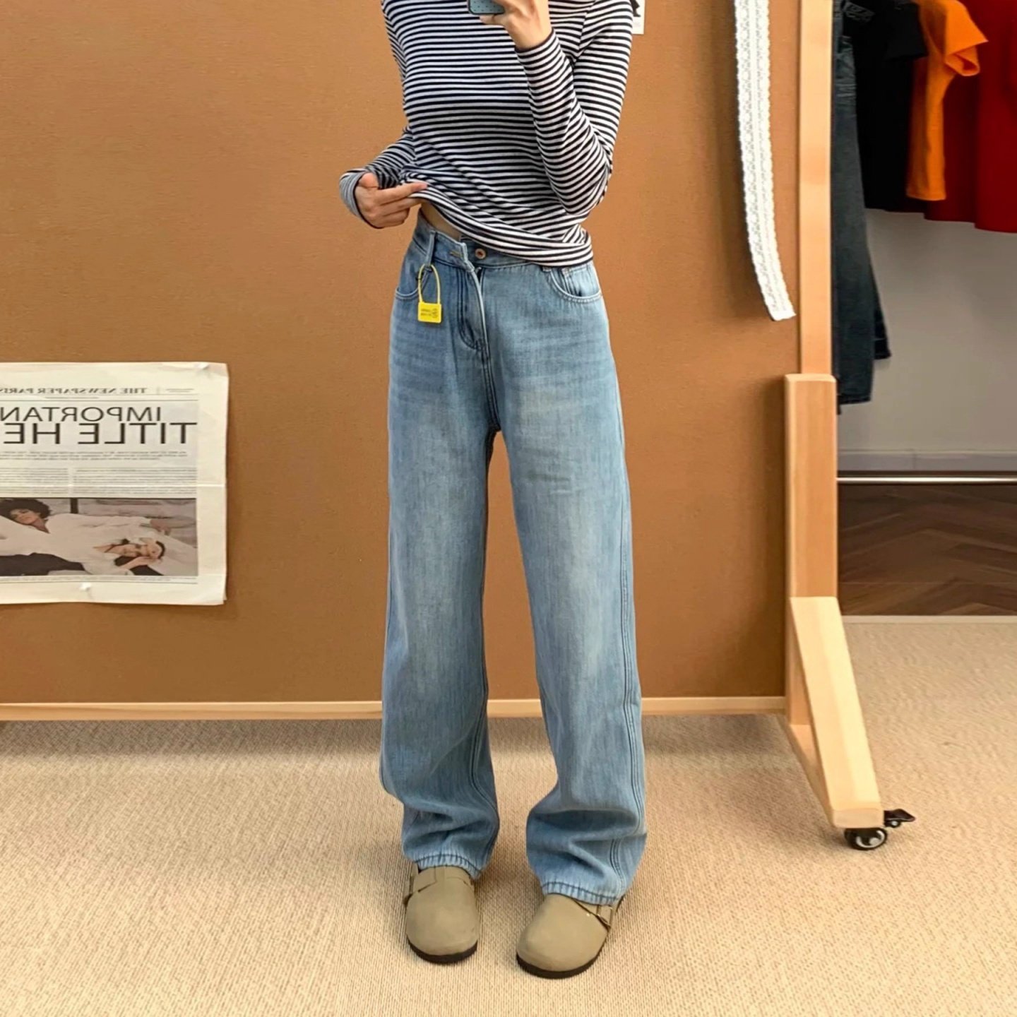 牛仔裤 通勤长裤 2025冬新款 高腰时尚 1261750 水洗阔腿牛仔裤 HM女装