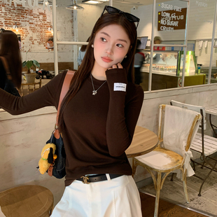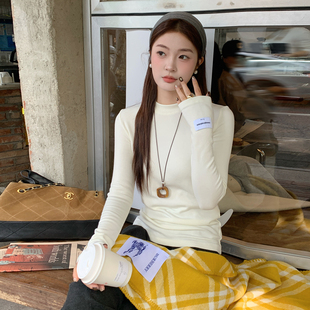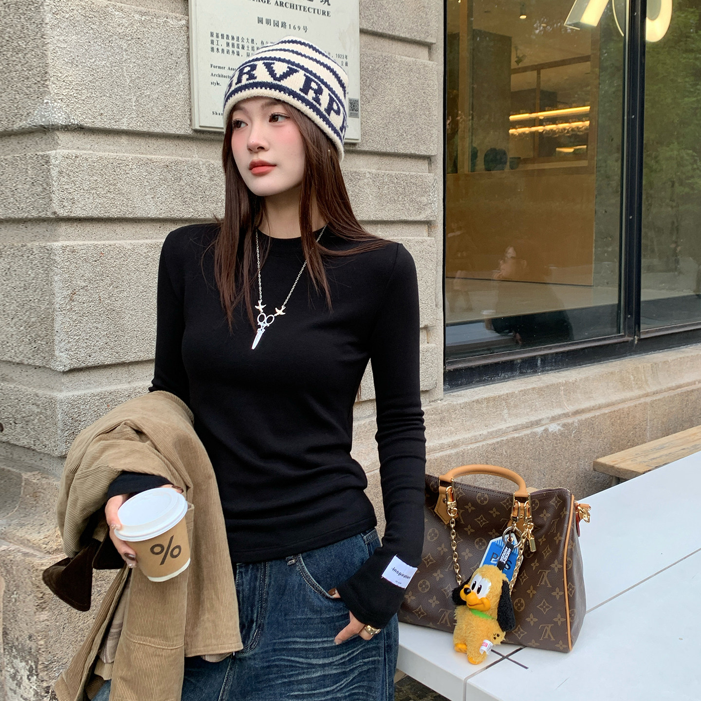 T恤磨毛加厚长袖 修身 上衣 女士保暖内搭2025冬新款 灰色加绒打底衫
